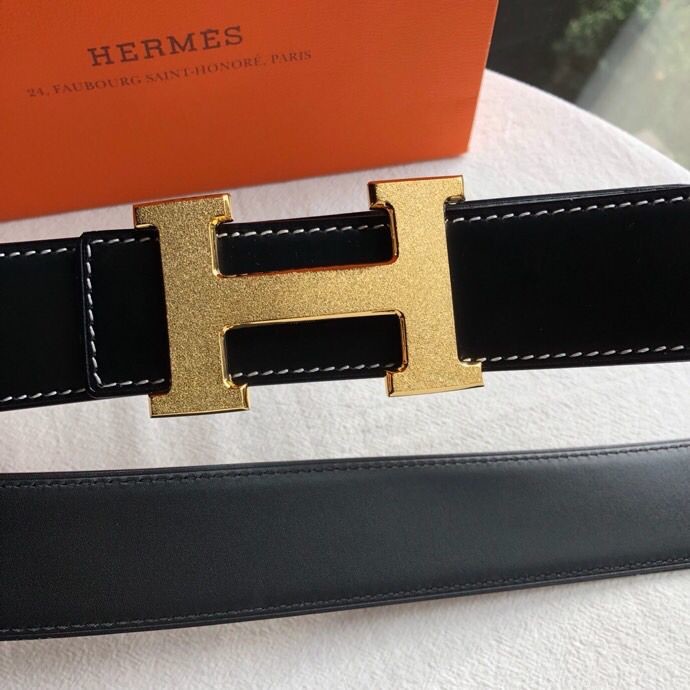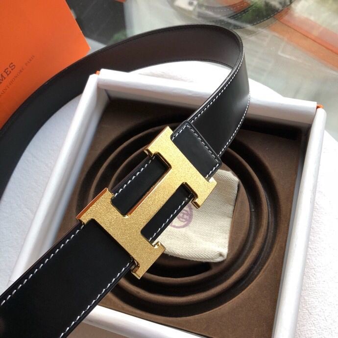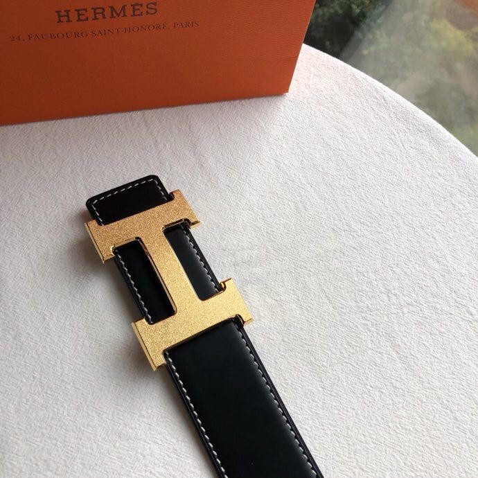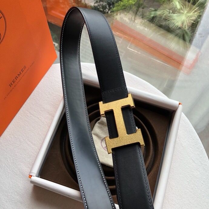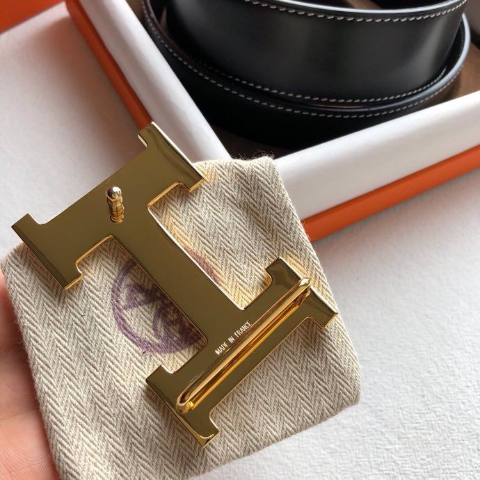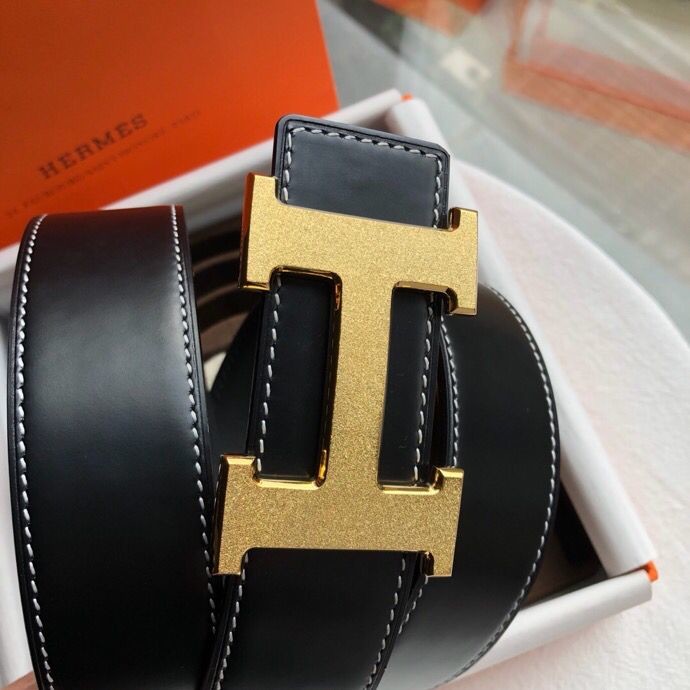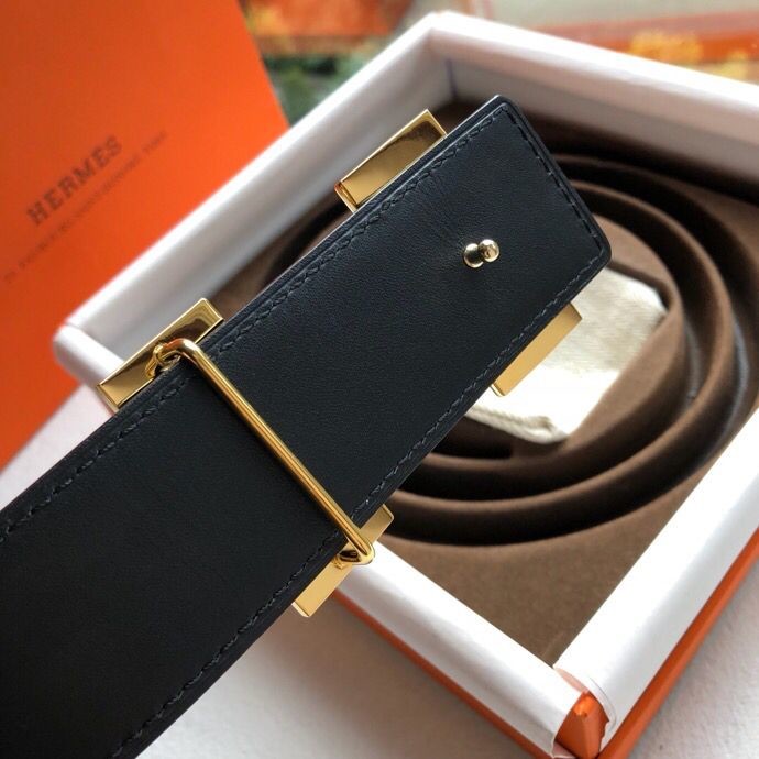 Hermes Reversible leather men s 3.8cm belt with stainless steel metal buckle
