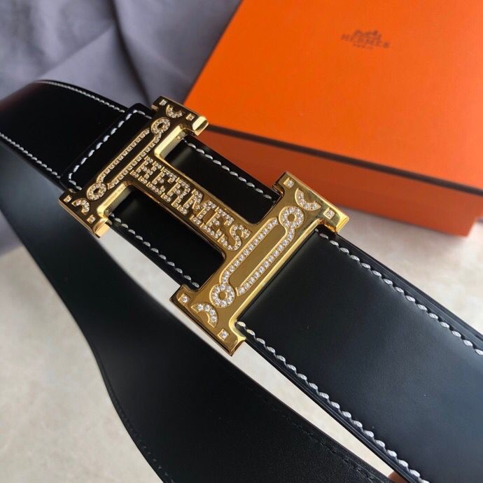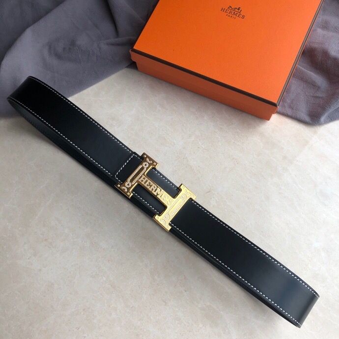 Hermes 3.8cm Reversible leather belt with stainless steel H buckle
