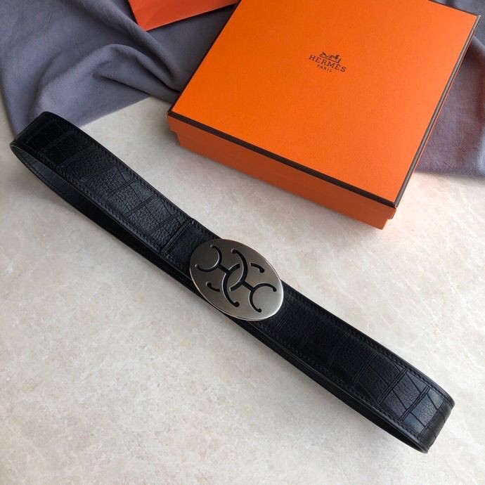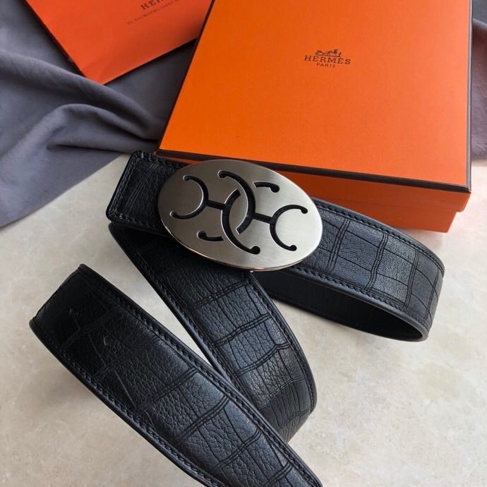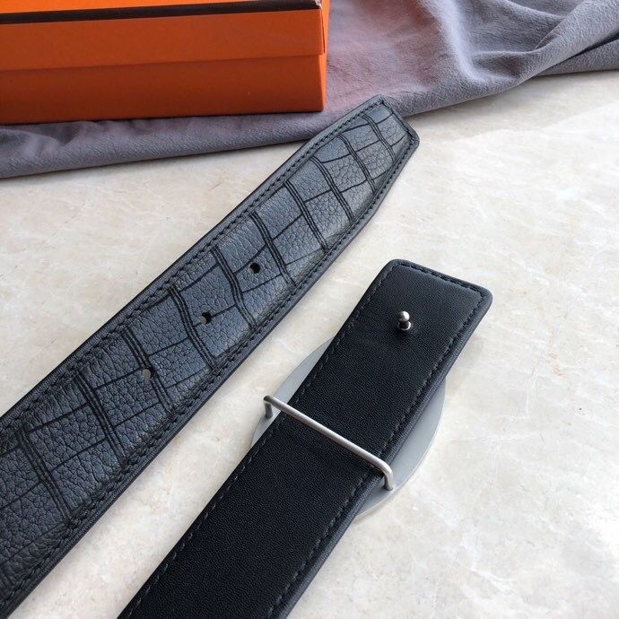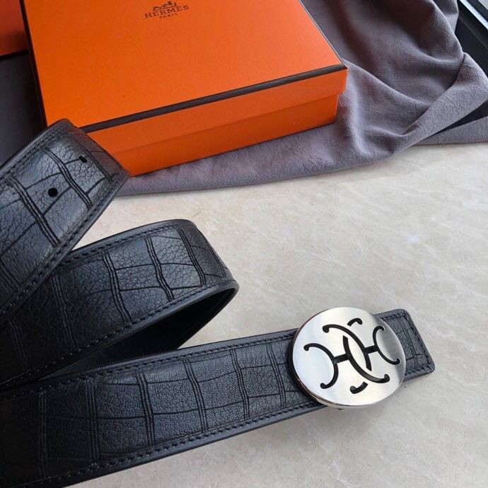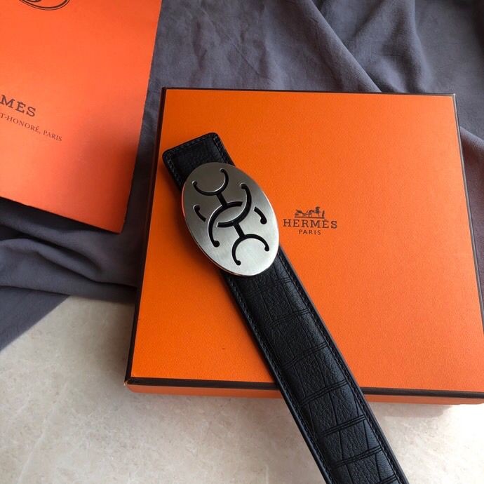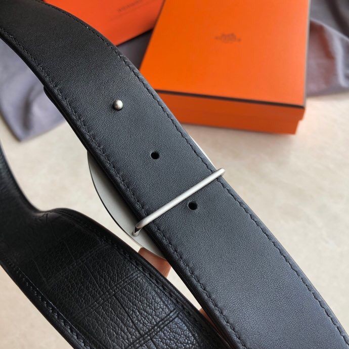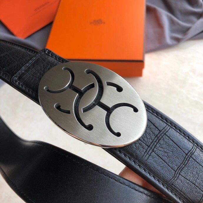 Hermes Stainless steel hollow hanging buckle deerskin men s 3.8cm belt