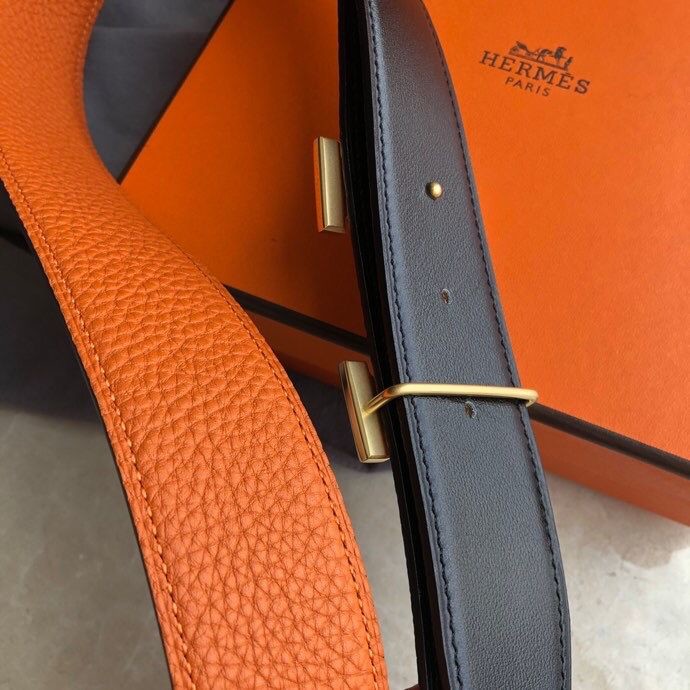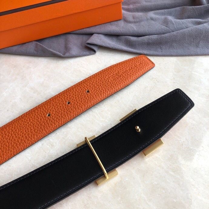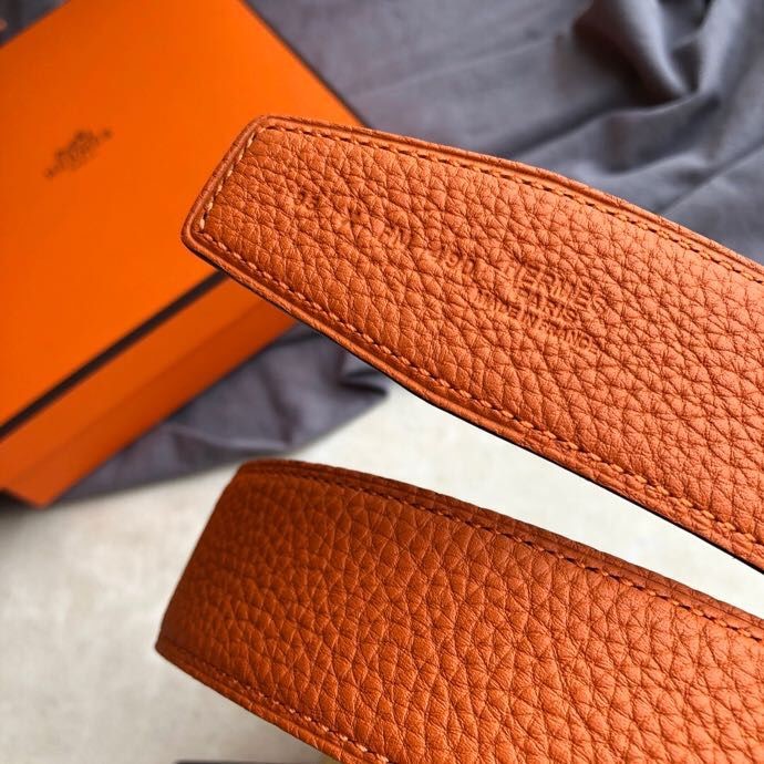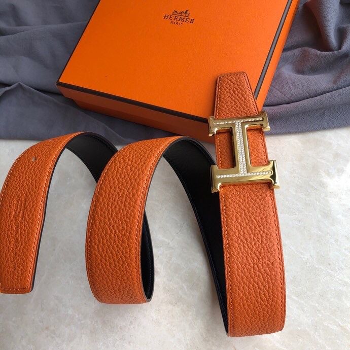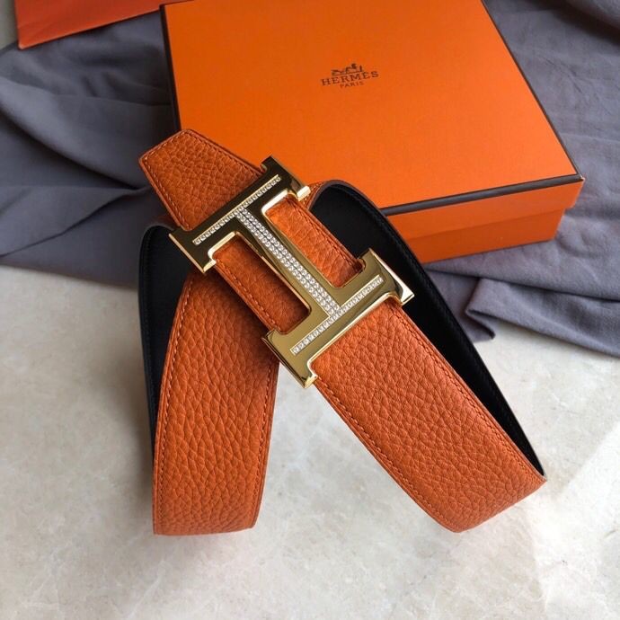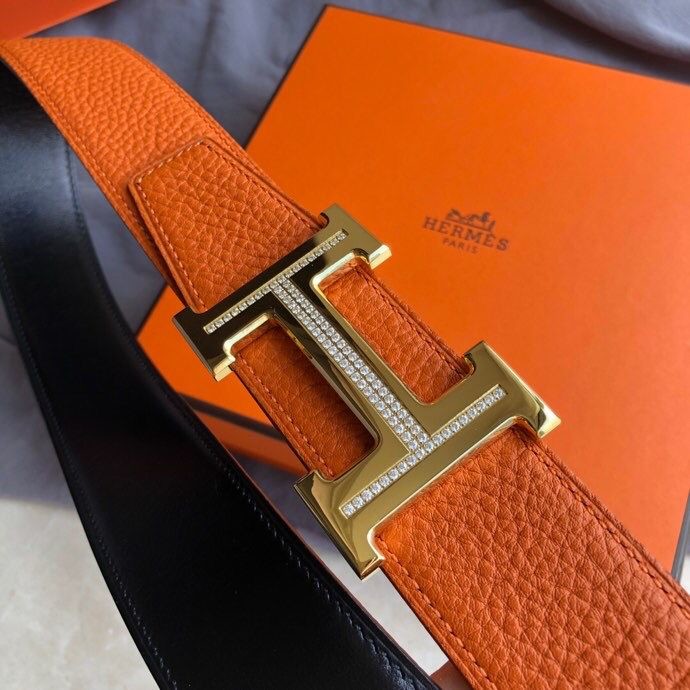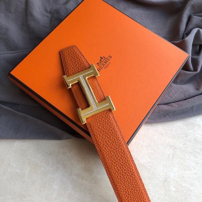 Hermes Stainless steel H single-row diamond bottom leather men s 3.8cm belt