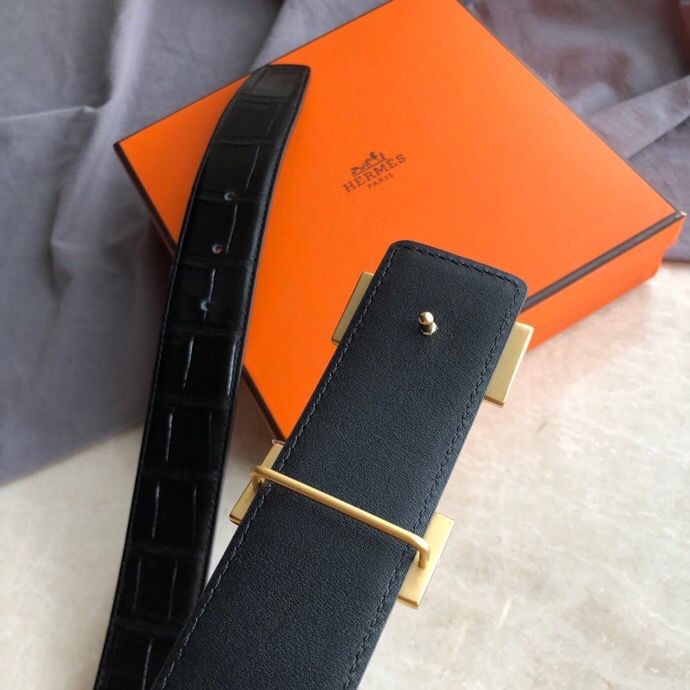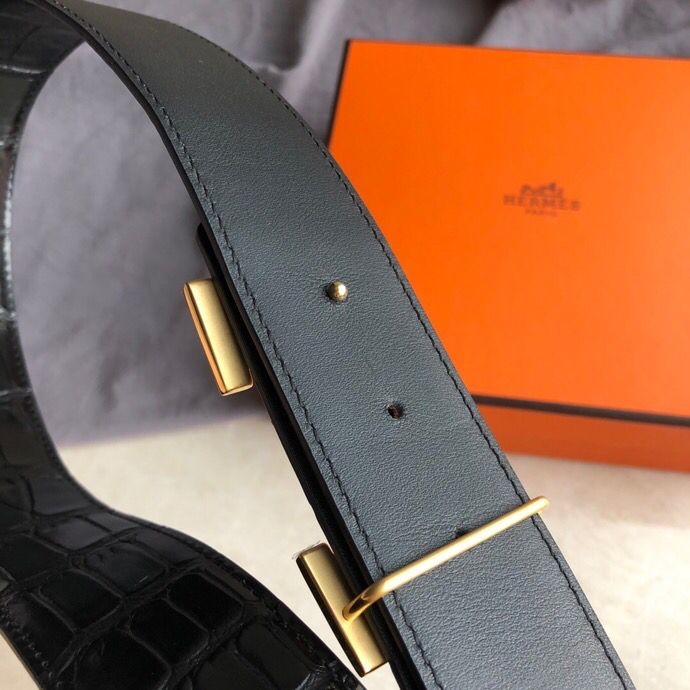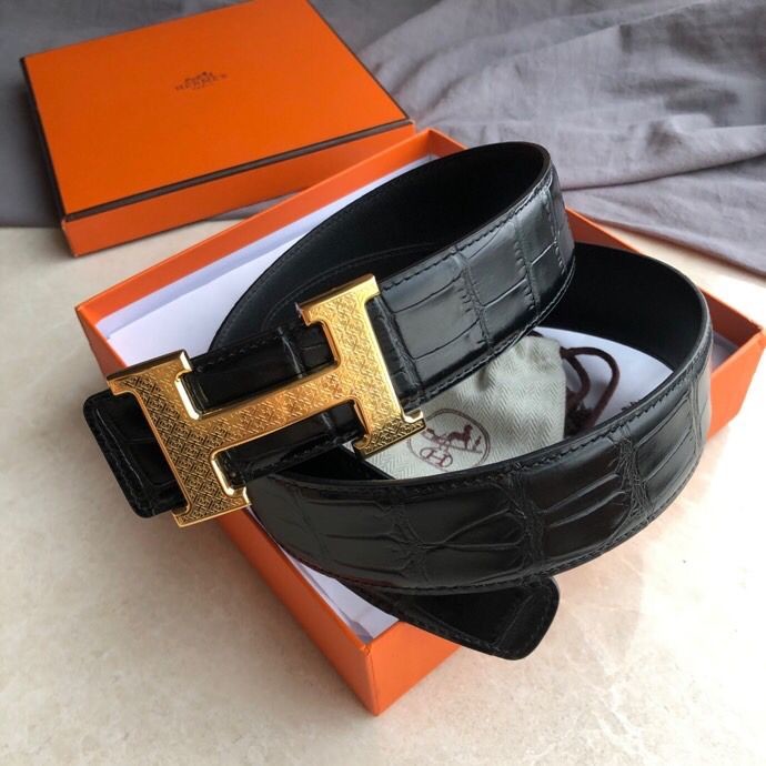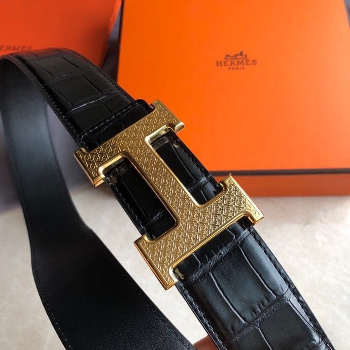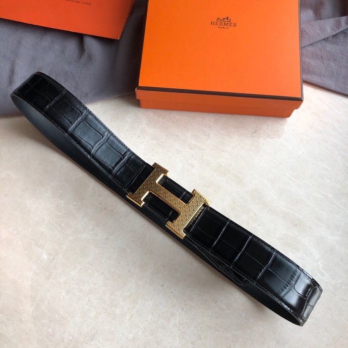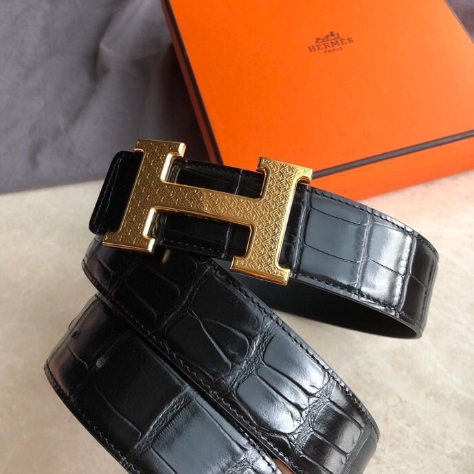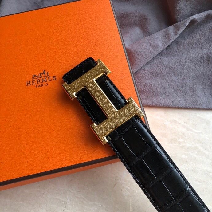 Hermes Stainless steel H pattern metal buckle & cowhide embossed crocodile pattern 38mm belt