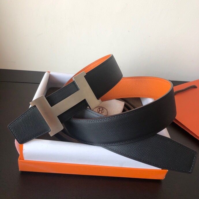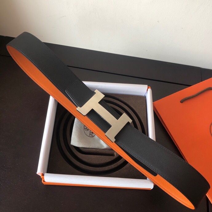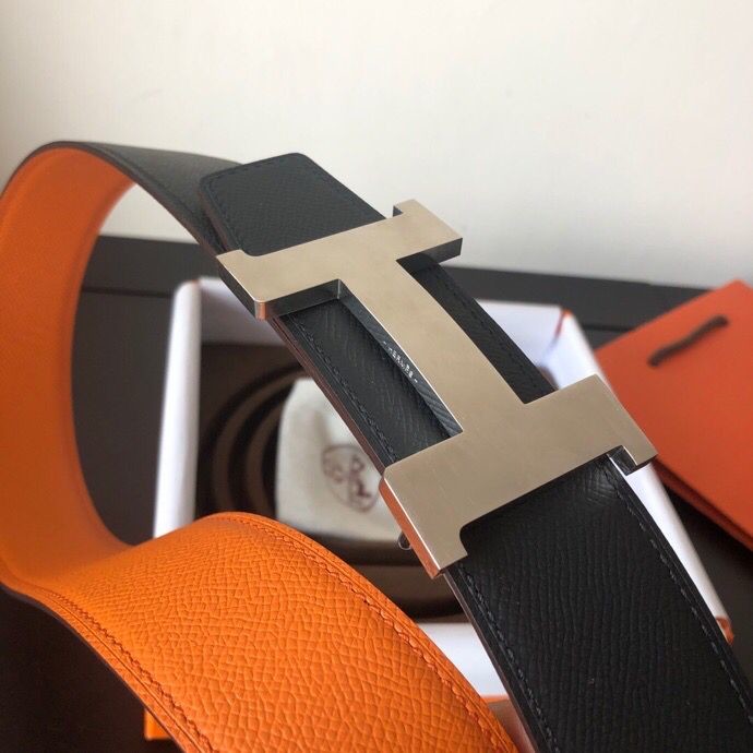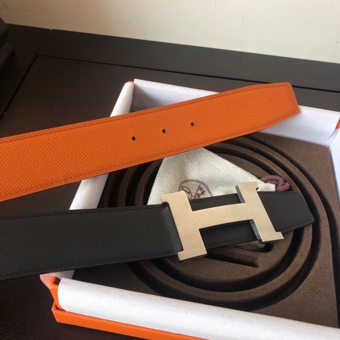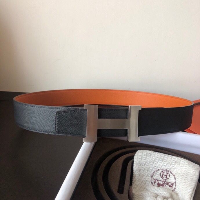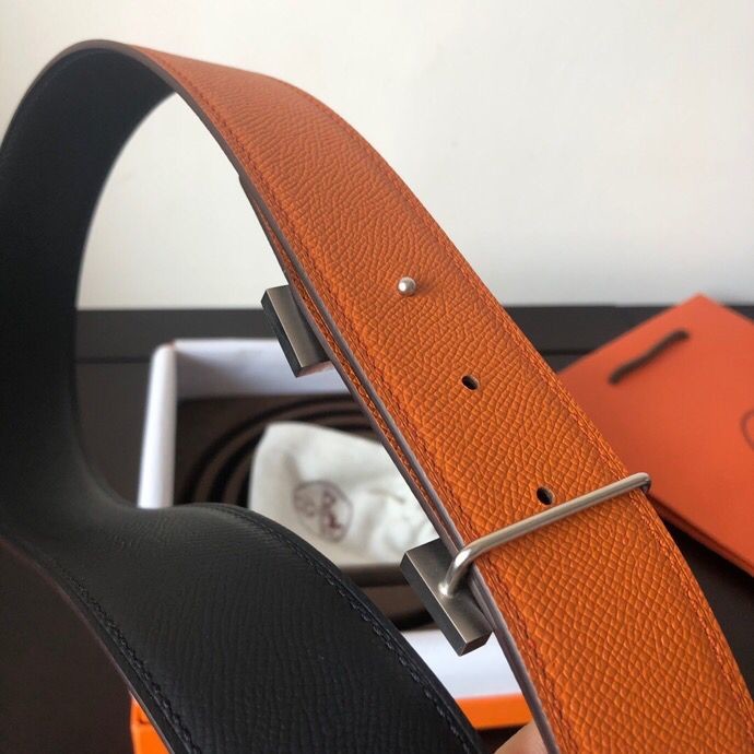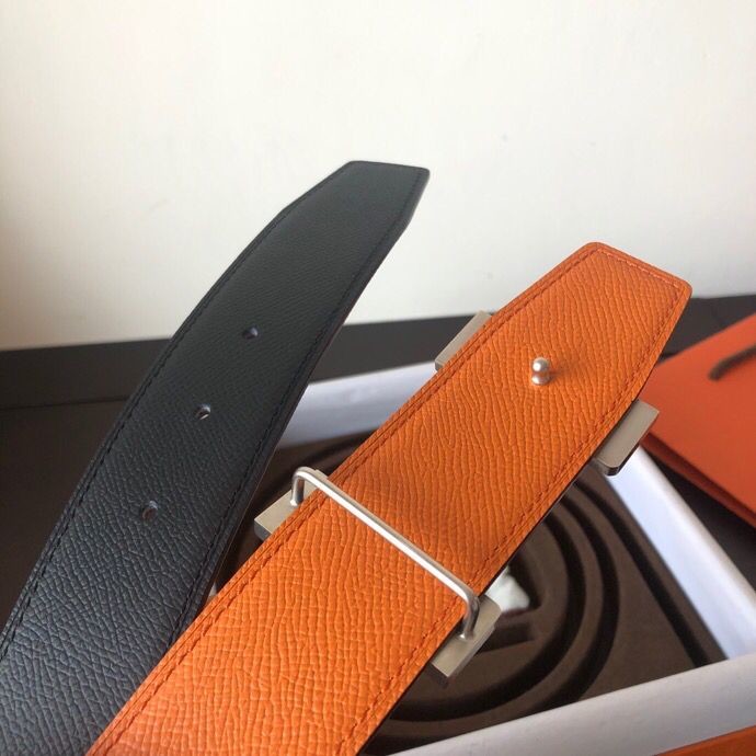 Hermes Stainless steel four-corner metal buckle 38mm Reversible leather belt
