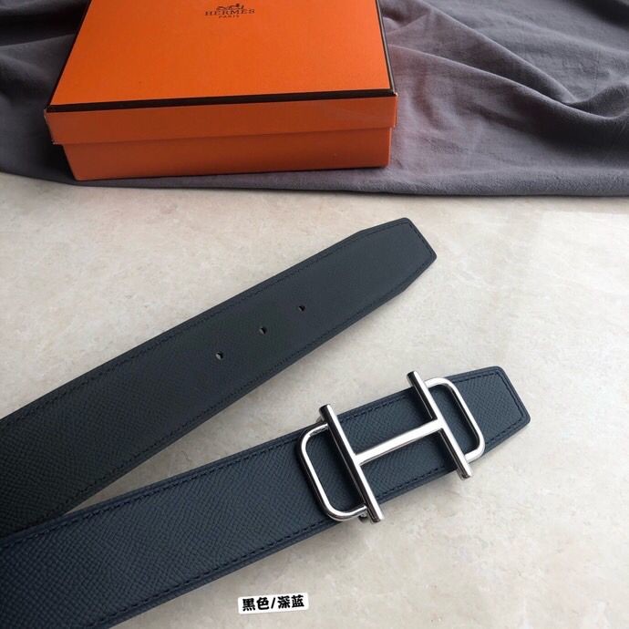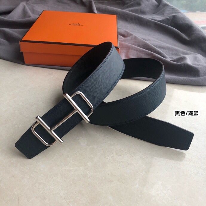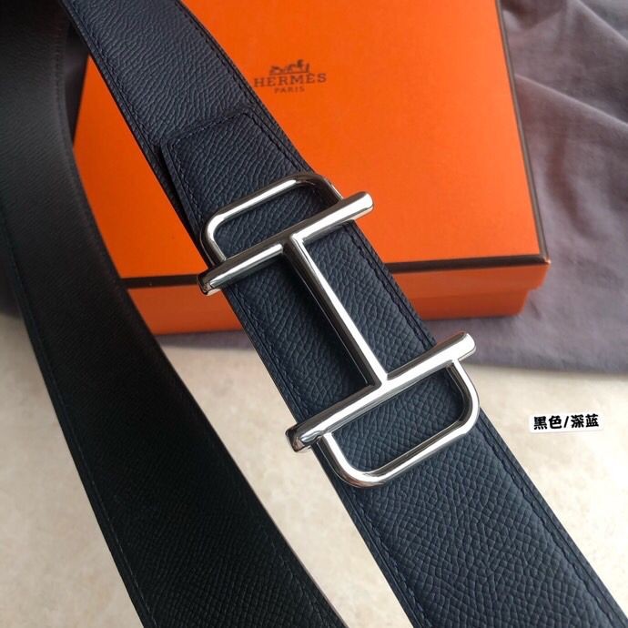 Hermes Men s 3.8cm leather belt with metal buckle and stainless steel