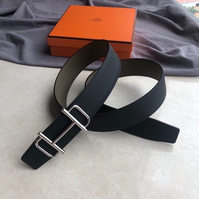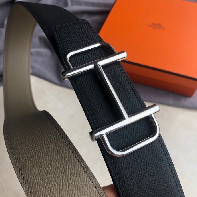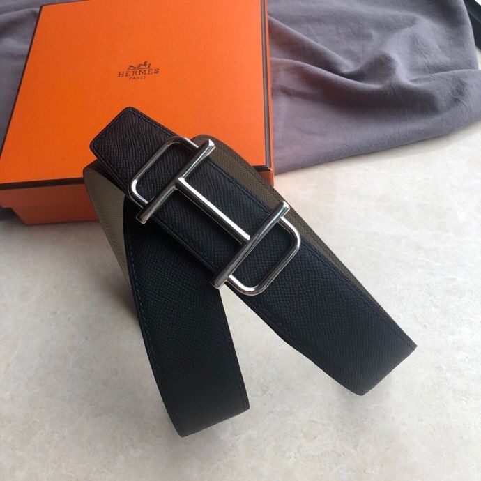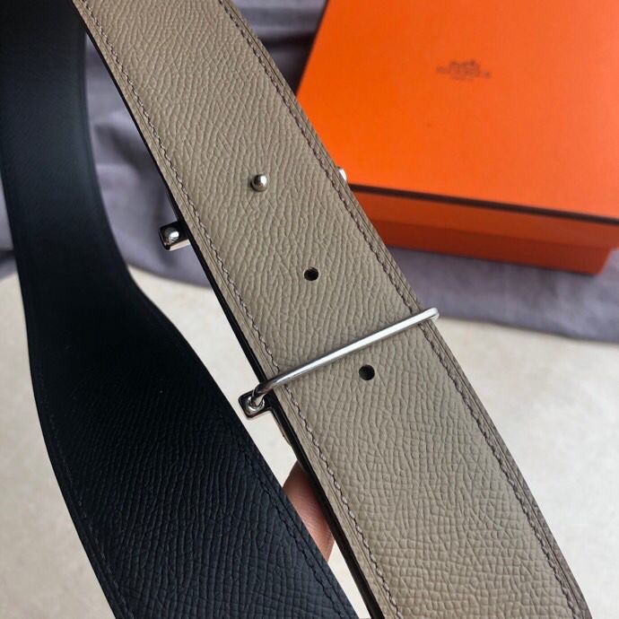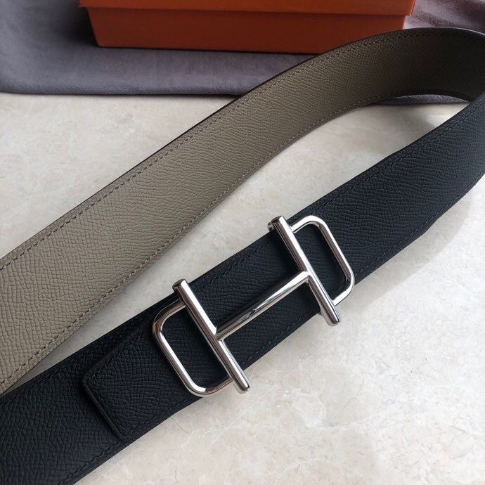Hermes Men s 3.8cm leather belt with metal buckle and stainless steel