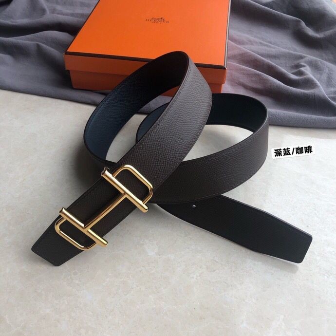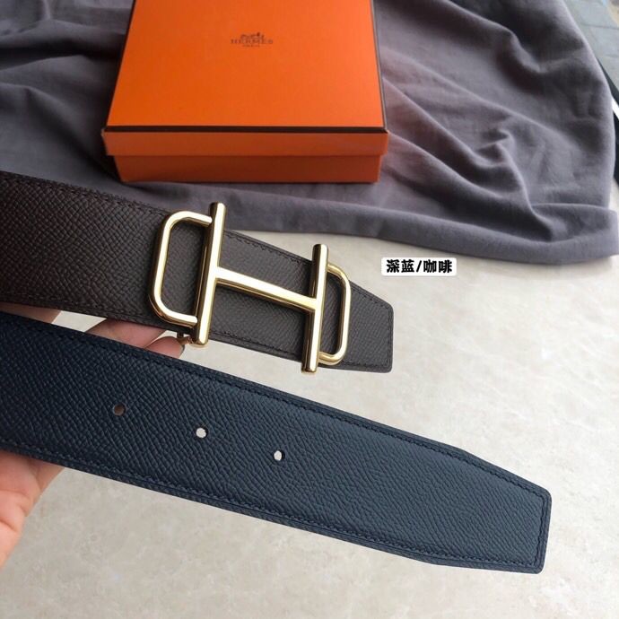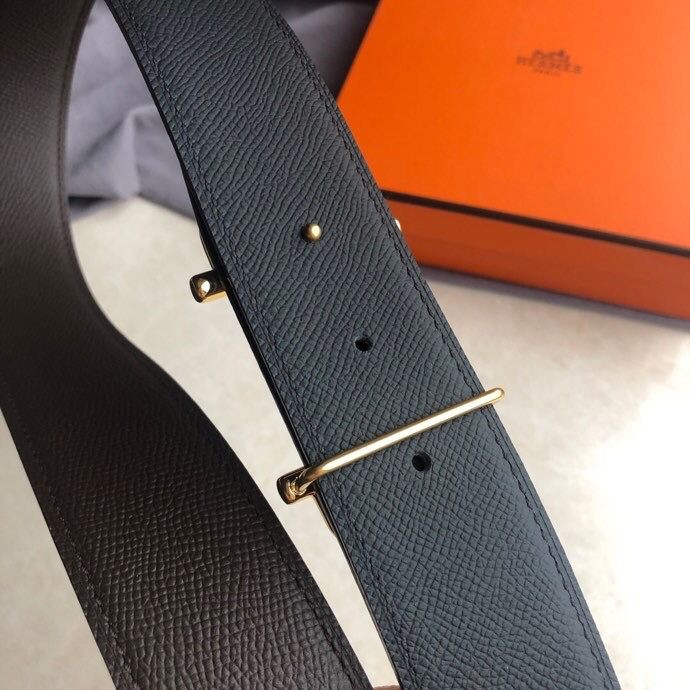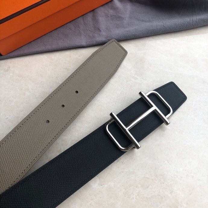 Hermes Men s 3.8cm leather belt with metal buckle and stainless steel