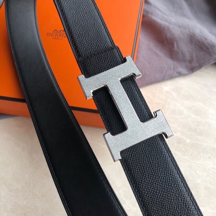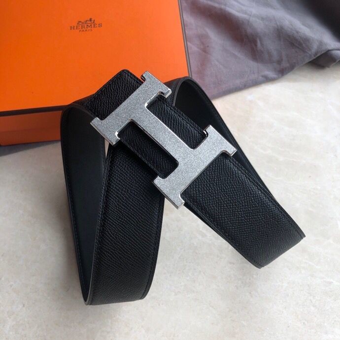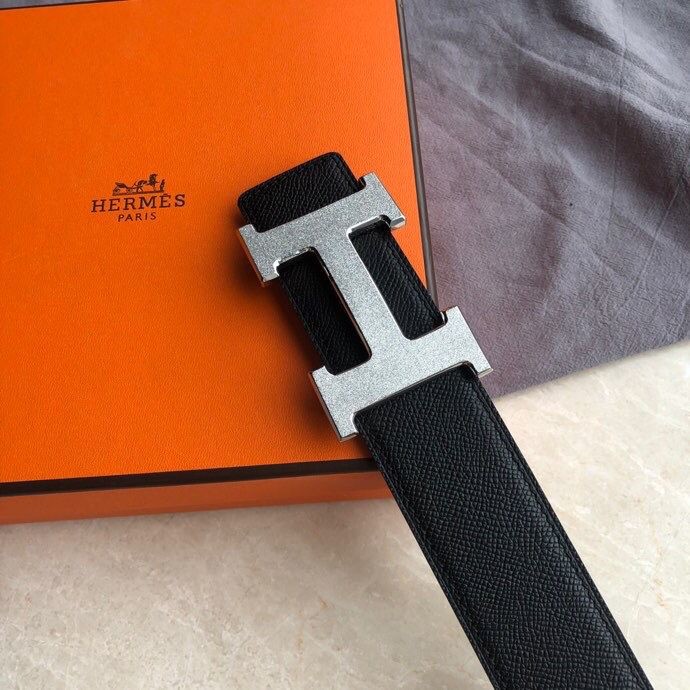 Hermes Men s 3.8cm stainless steel H buckle leather belt