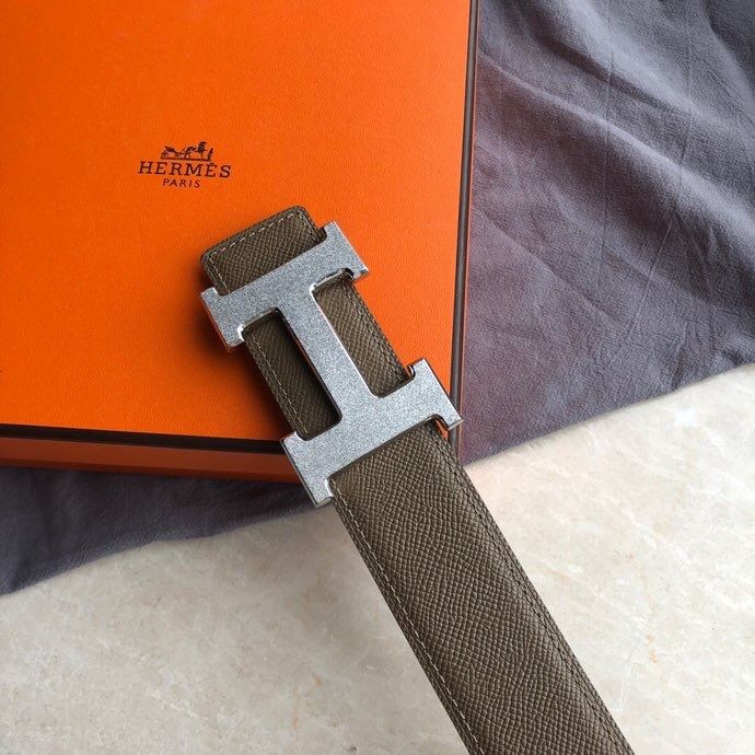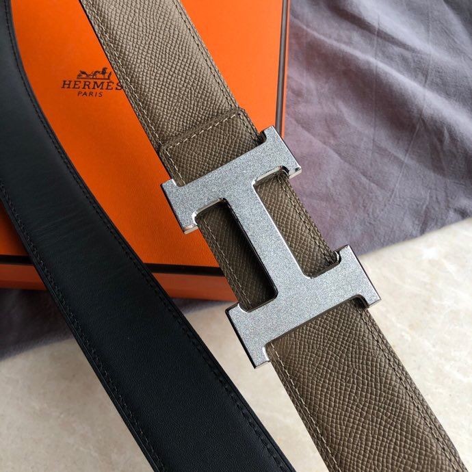 Hermes Men s 3.8cm stainless steel H buckle leather belt
