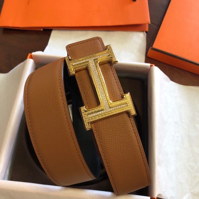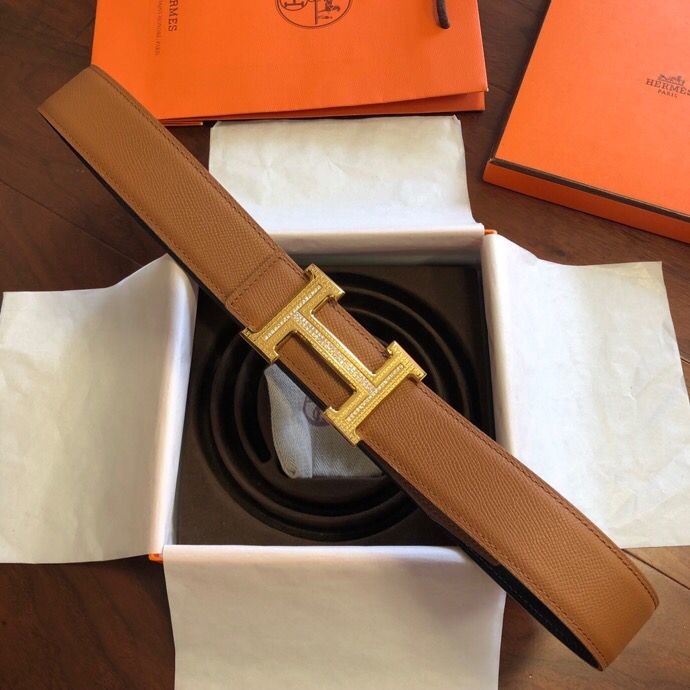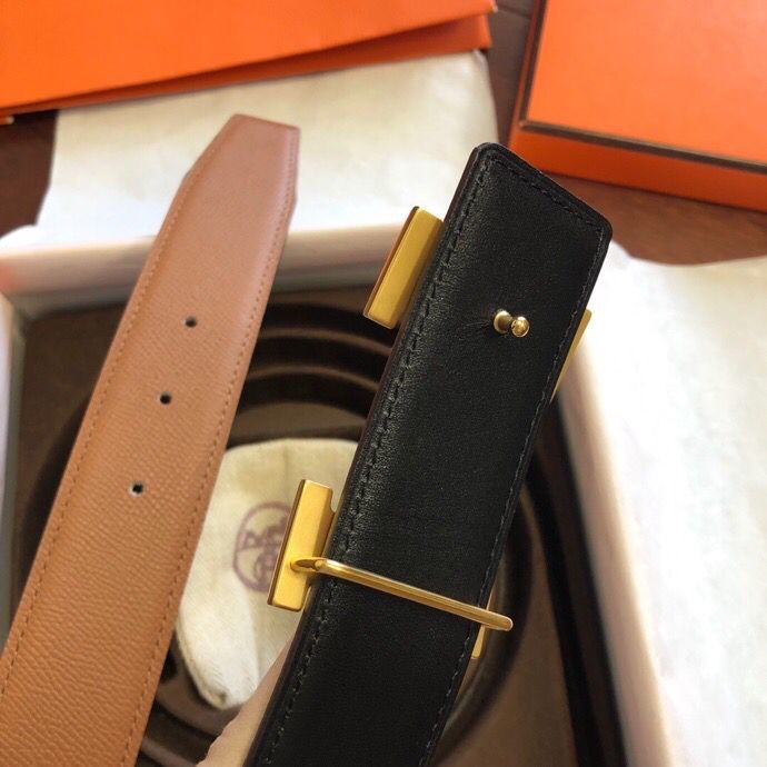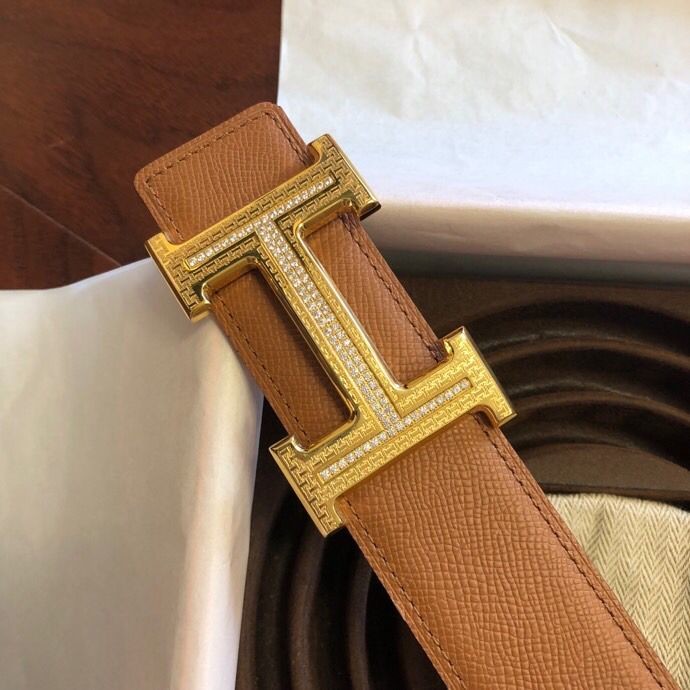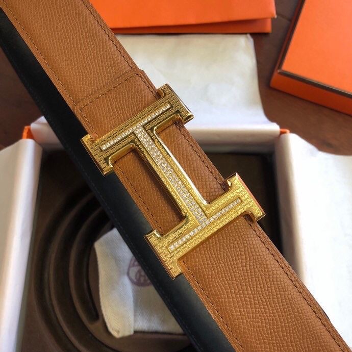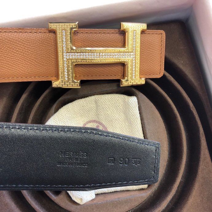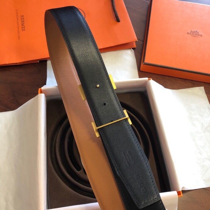 Hermes Stainless steel pattern metal buckle & leather 38mm belt