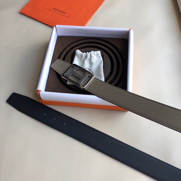 Hermes Men s 3.8cm Royal Metal Buckle Stainless Steel Reversible Leather Belt