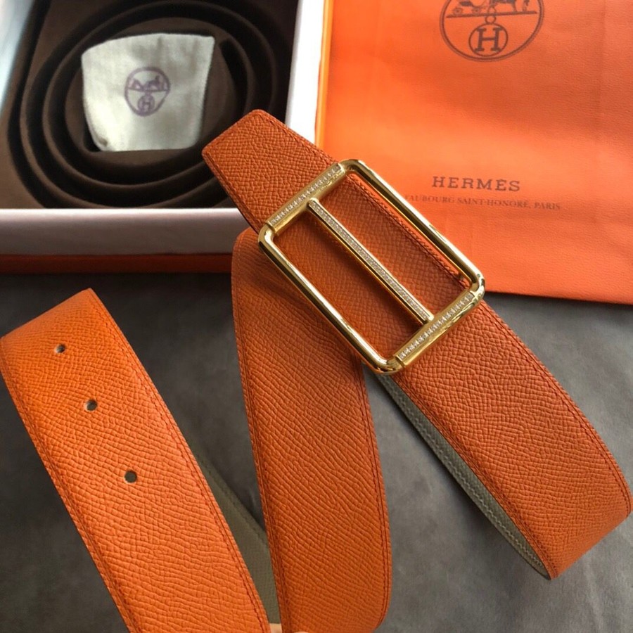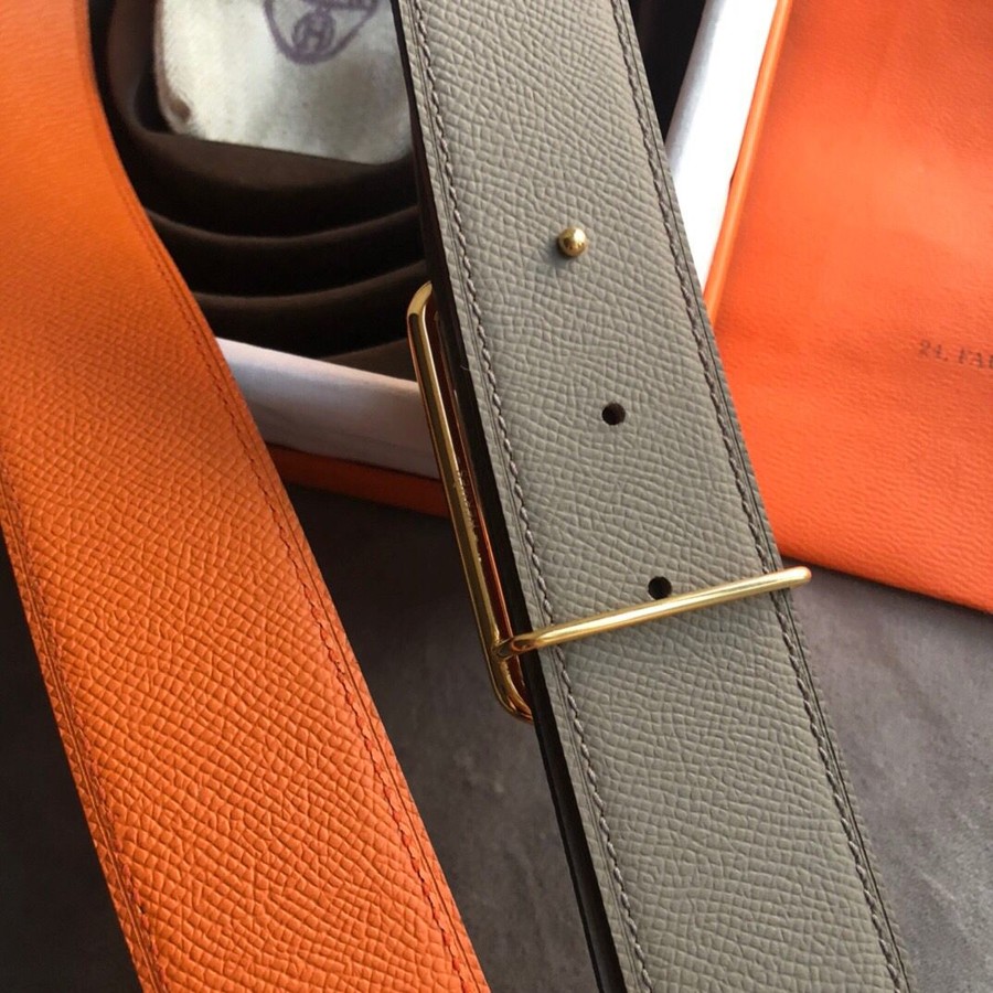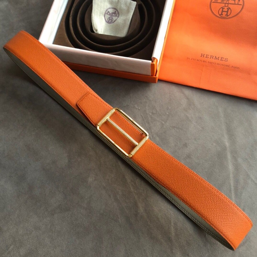 Hermes 38mm Reversible leather belt stainless steel metal buckle belt