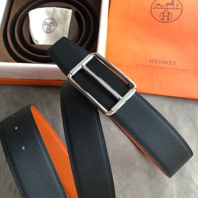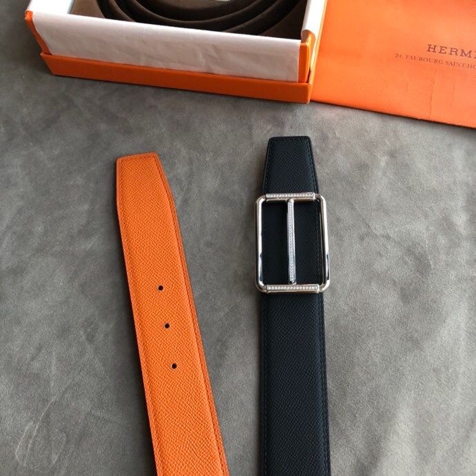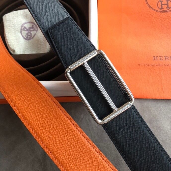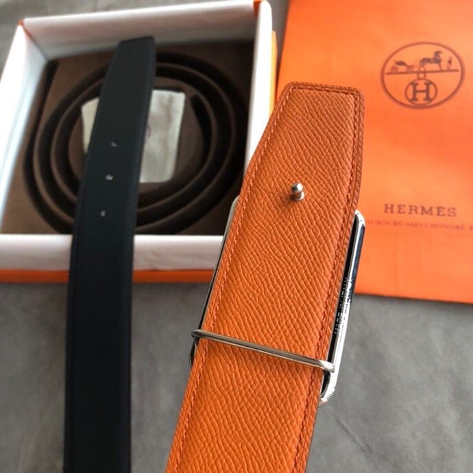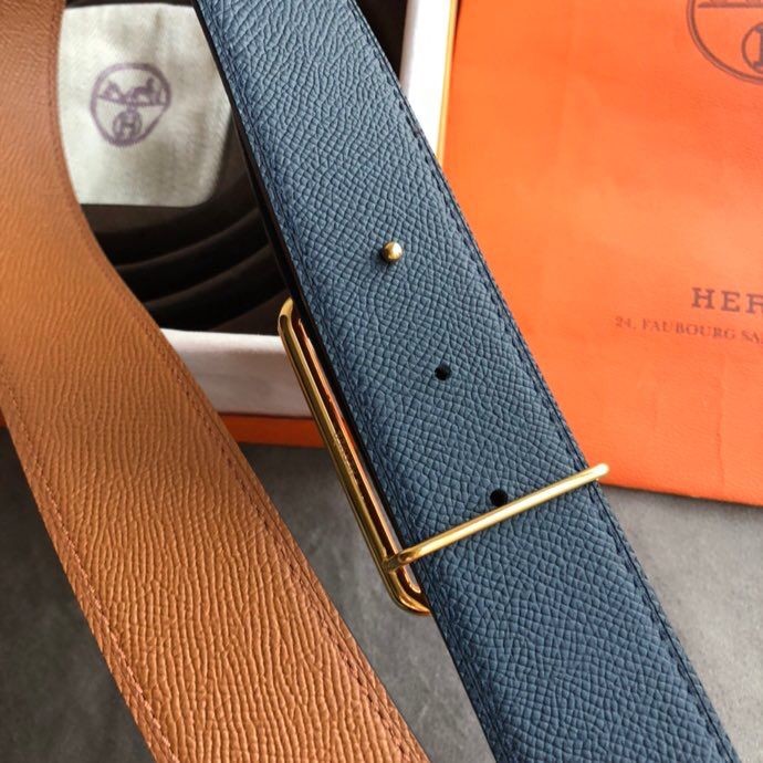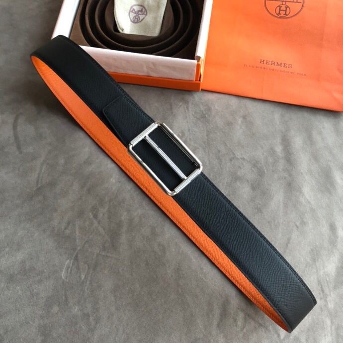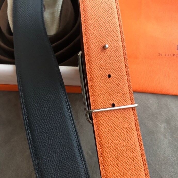 Hermes 38mm Reversible leather belt with stainless steel metal buckle