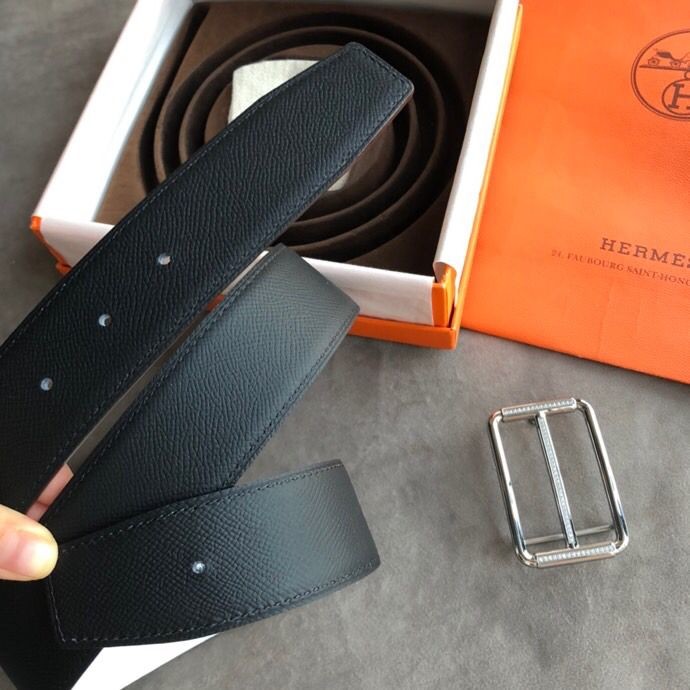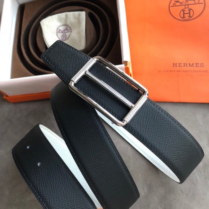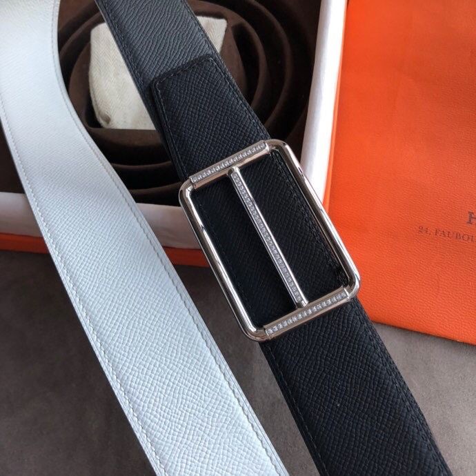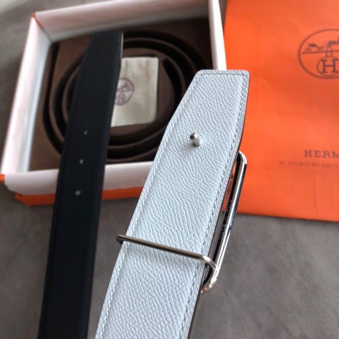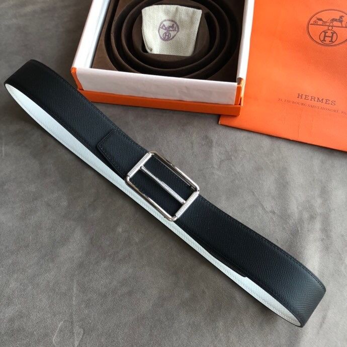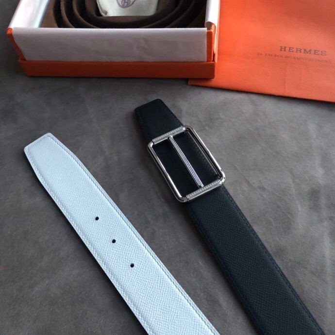 Hermes 38mm Reversible leather belt with stainless steel metal buckle
