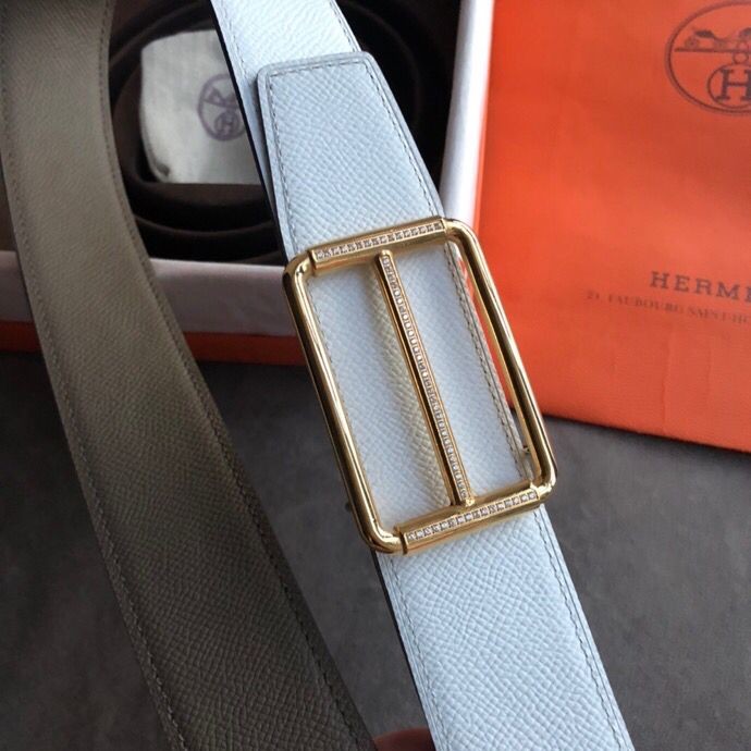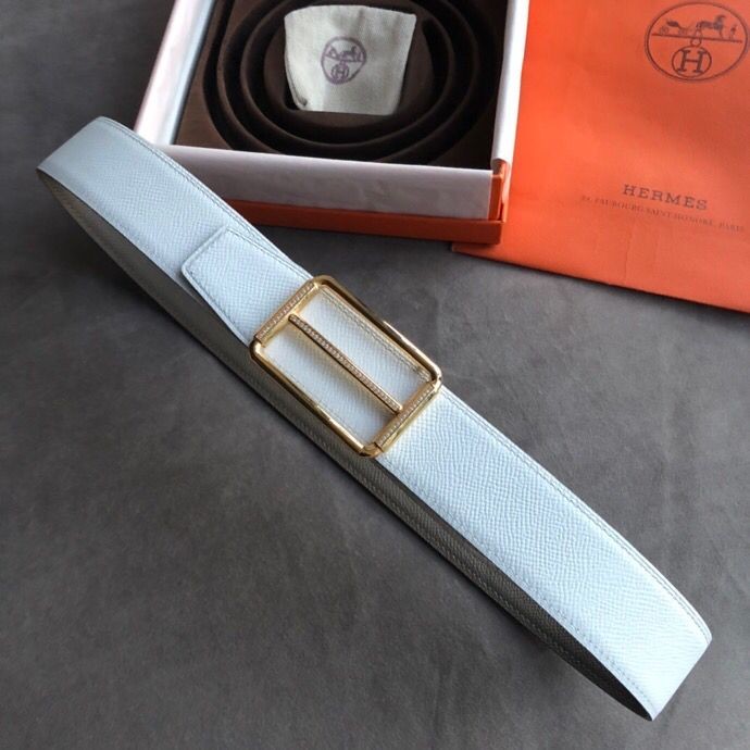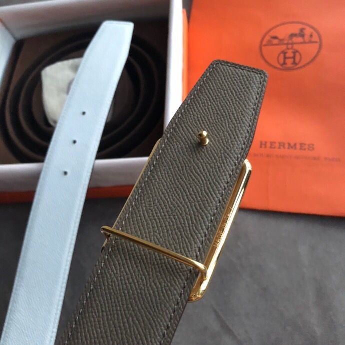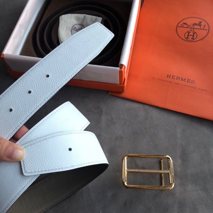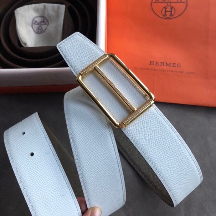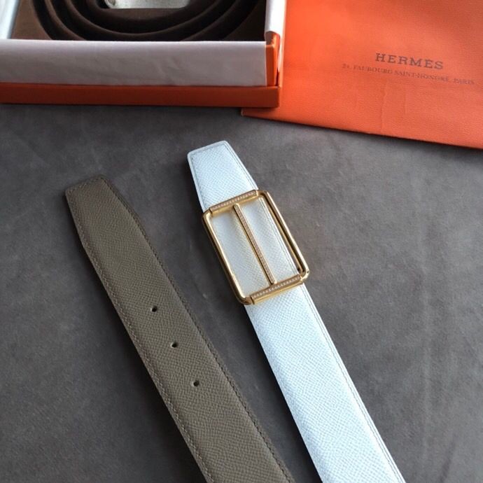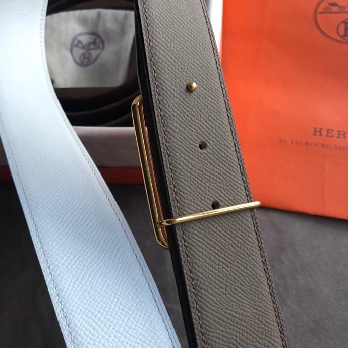 Hermes 38mm Reversible leather belt with stainless steel metal buckle