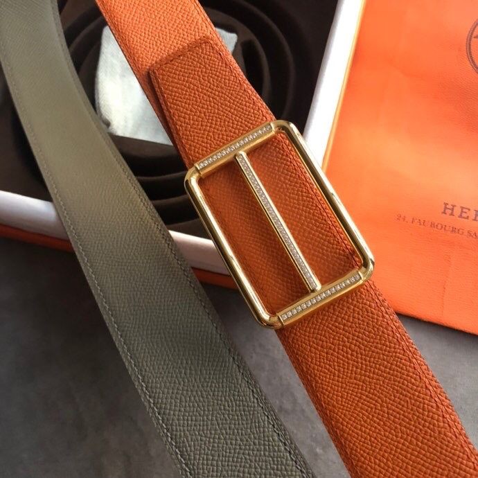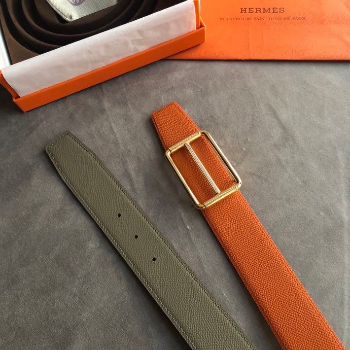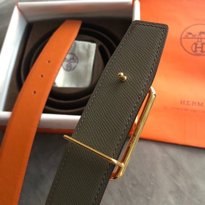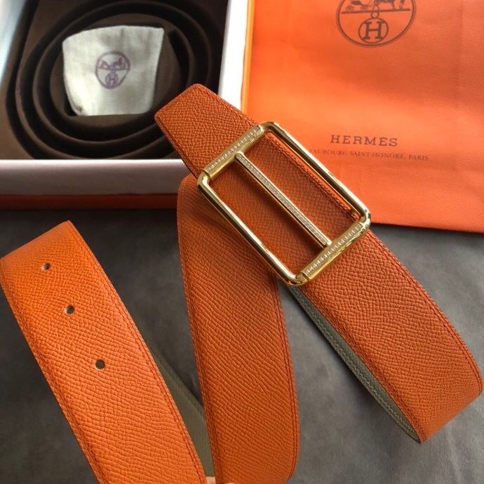Hermes 38mm Reversible leather belt with stainless steel metal buckle