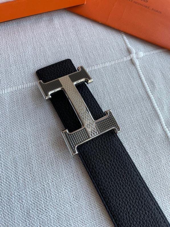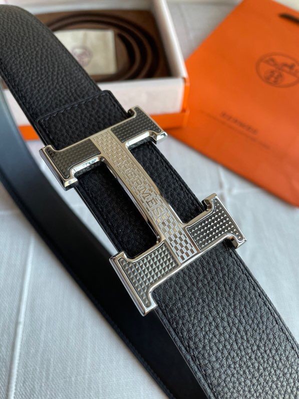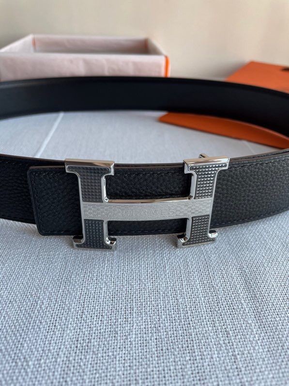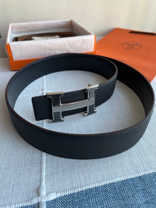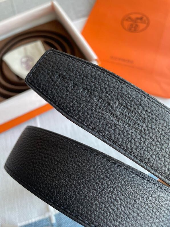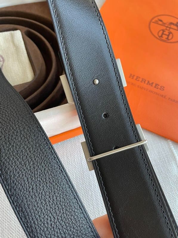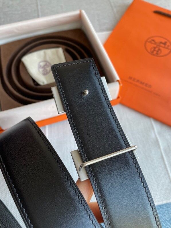 Hermes Stainless Steel Fiber Sheet Hanging Buckle Reversible Leather Men s 3.8cm Belt