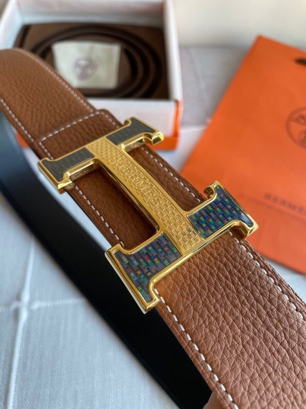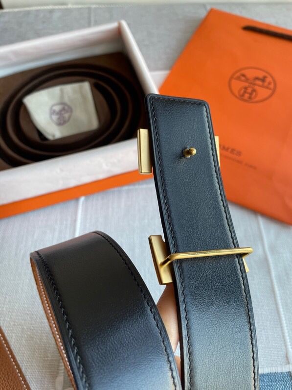 Hermes Stainless Steel Fiber Sheet Hanging Buckle Reversible Leather Men s 3.8cm Belt
