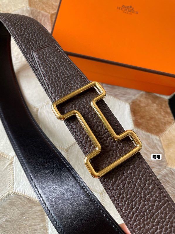 Hermes Tonight Metal Stainless Steel Belt Buckle & Reversible Leather Belt 38mm