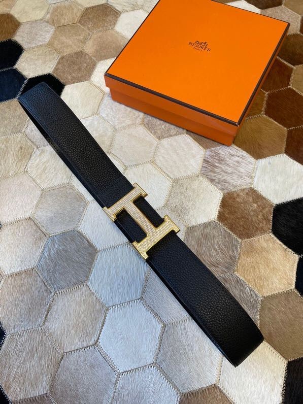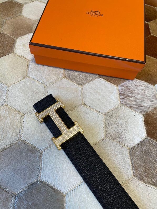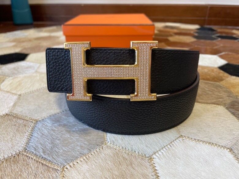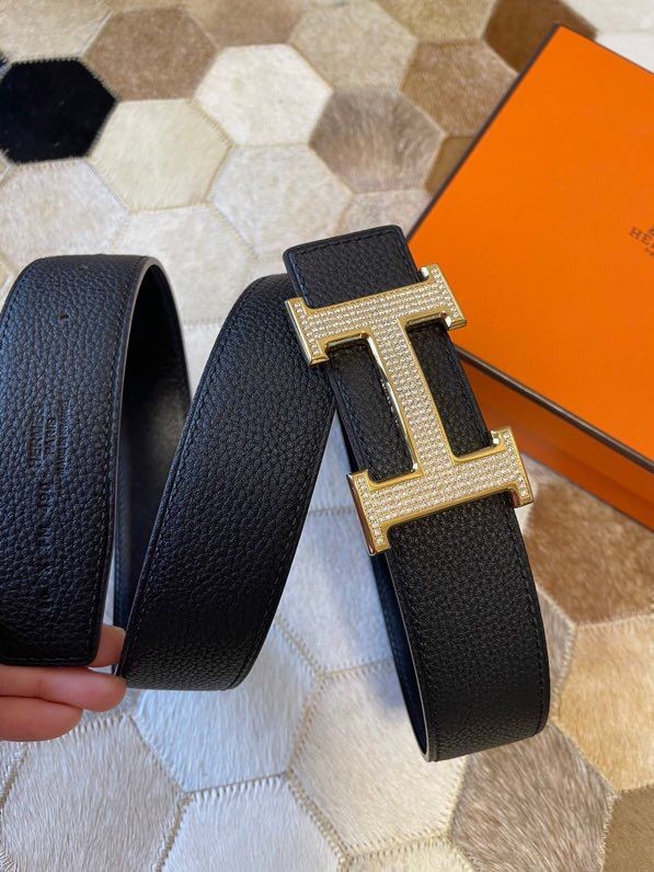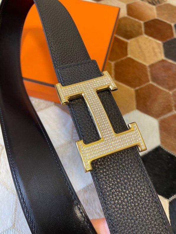 Hermes Stainless Steel Full Rhinestone Reversible Leather Men s 3.8cm Belt