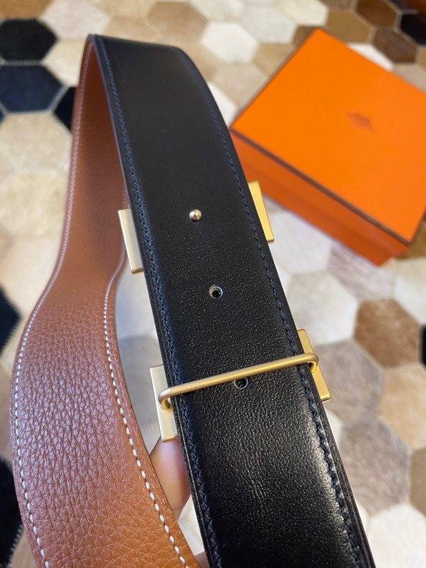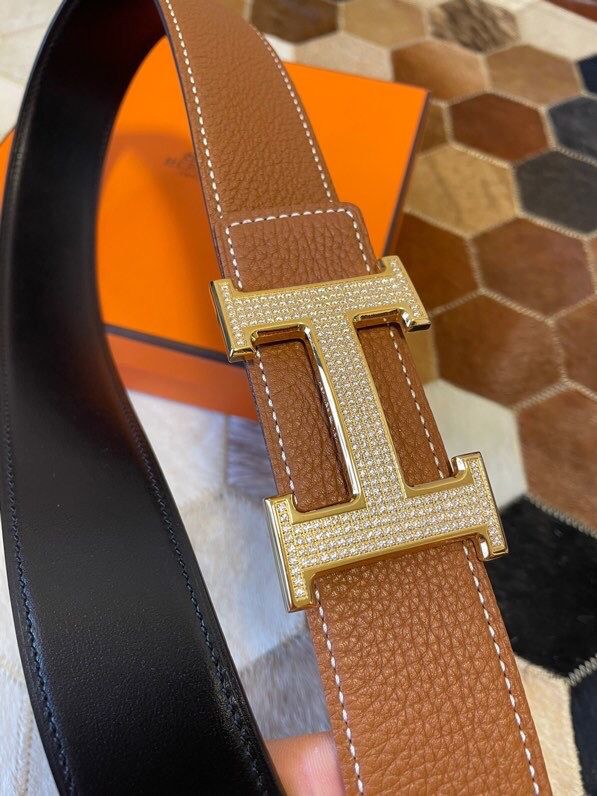 Hermes Stainless Steel Full Rhinestone Reversible Leather Men s 3.8cm Belt