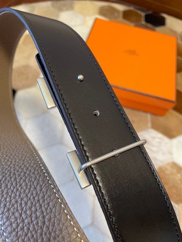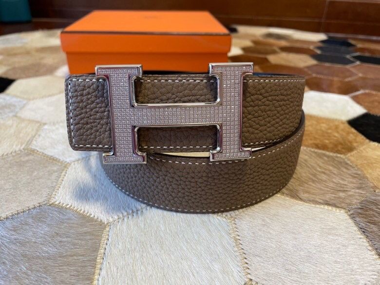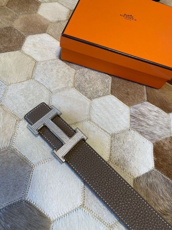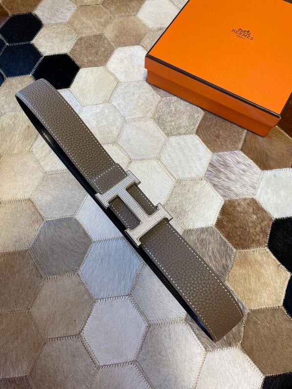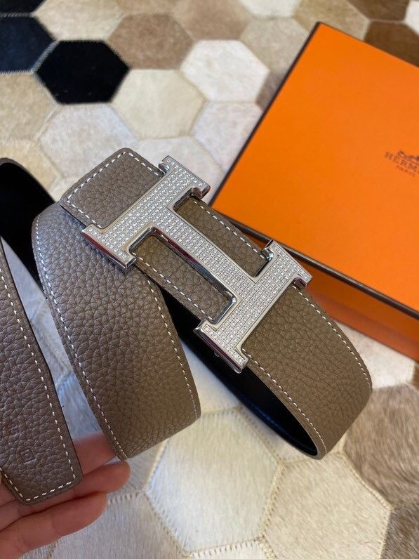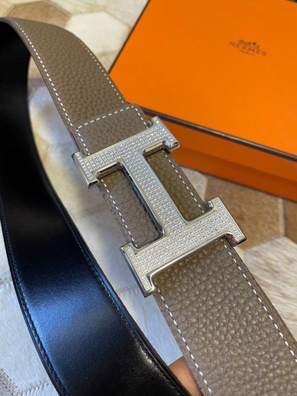 Hermes Stainless Steel Full Rhinestone Reversible Leather Men s 3.8cm Belt