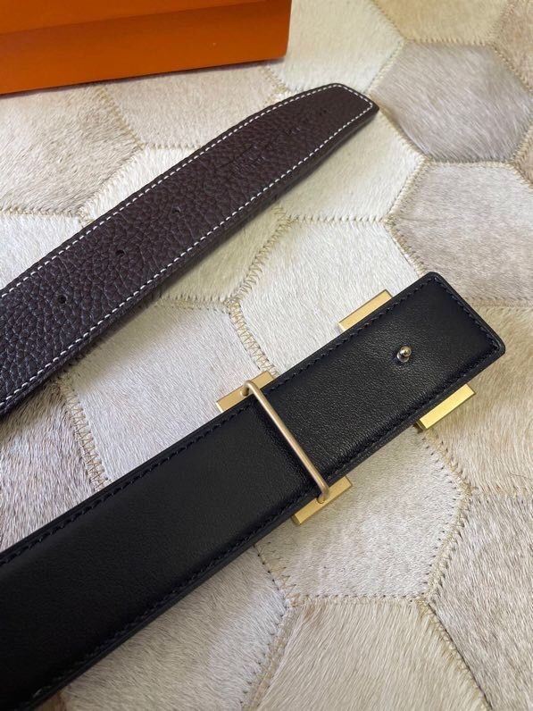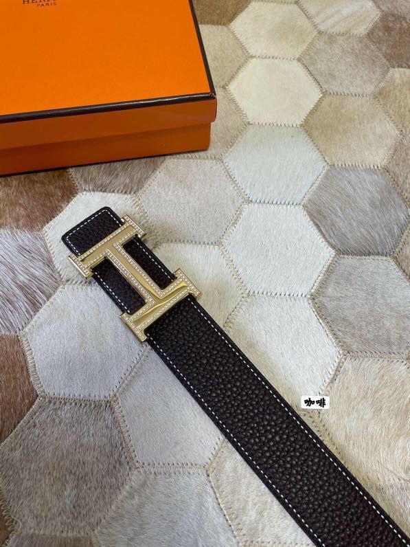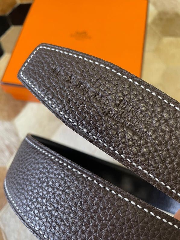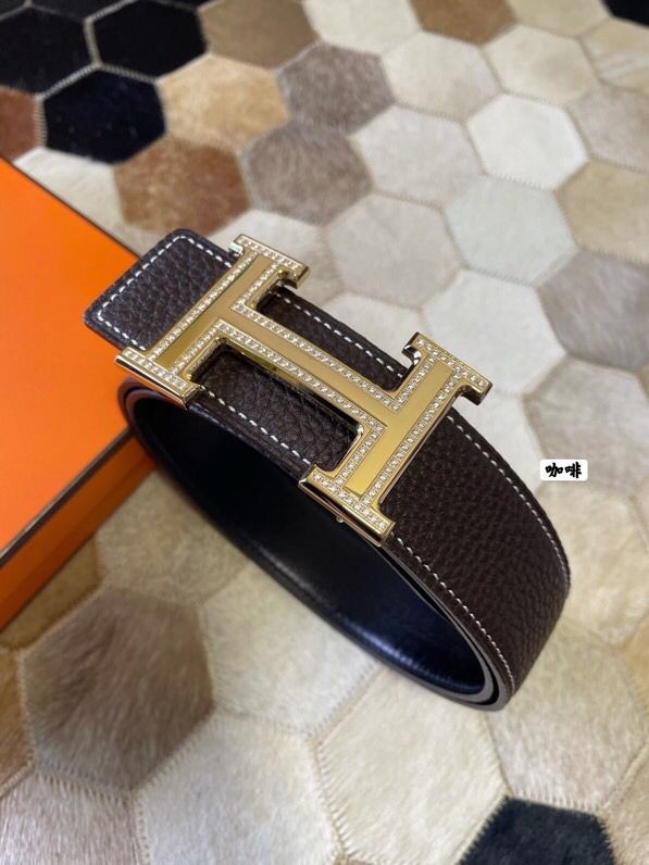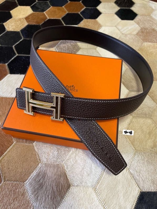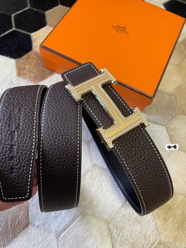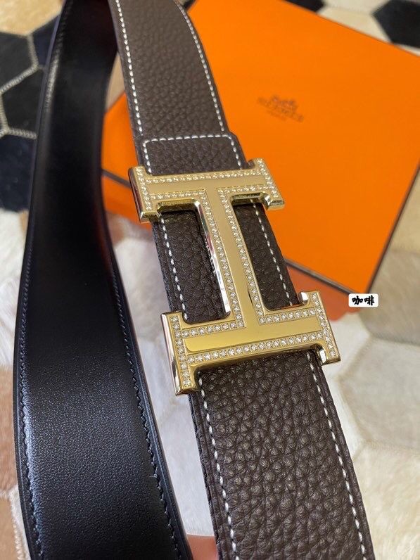 Hermes Stainless Steel Double Row Rhinestone Hanging Buckle Reversible Leather Men s 3.8cm Belt