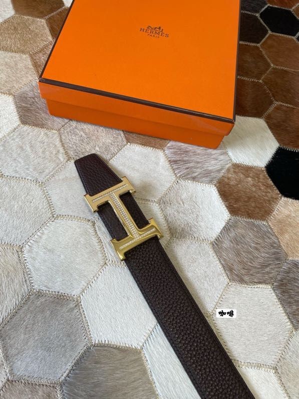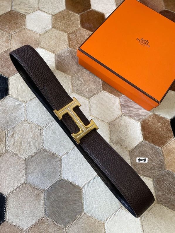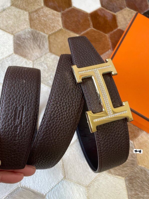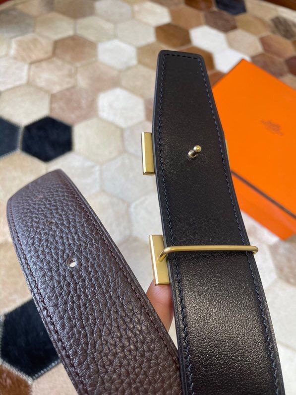 Hermes Stainless steel H single-row studded leather belt