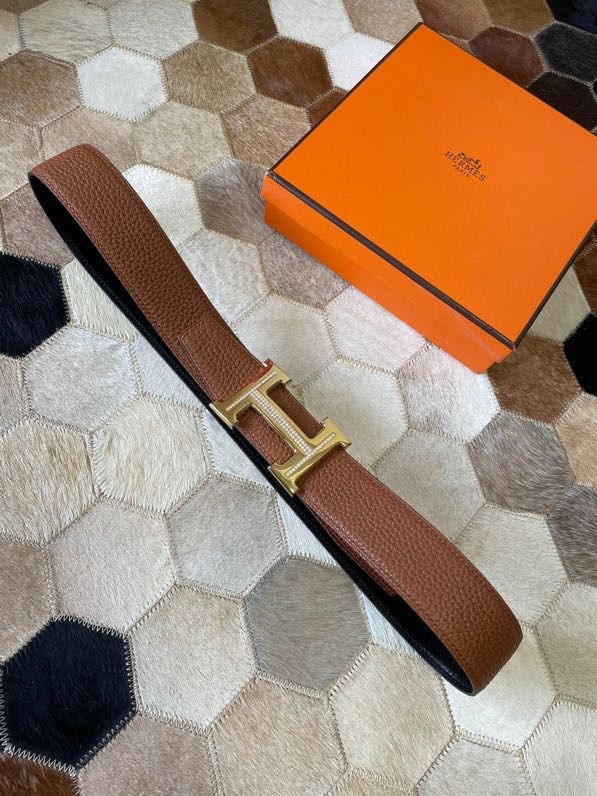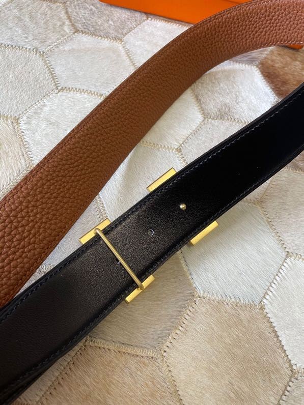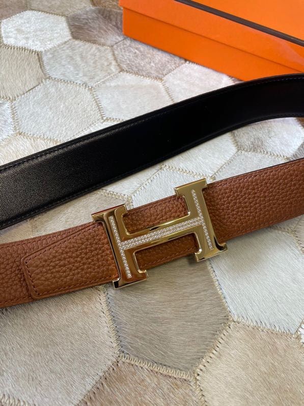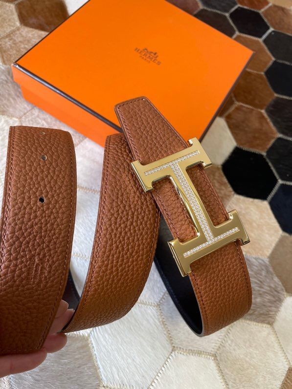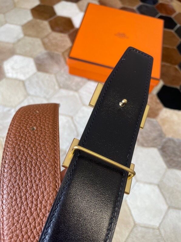 Hermes Stainless steel H single-row studded leather belt