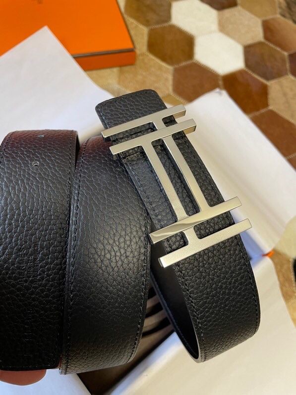 Hermes Togo leather stainless steel duplex buckle 38mm classic men s belt