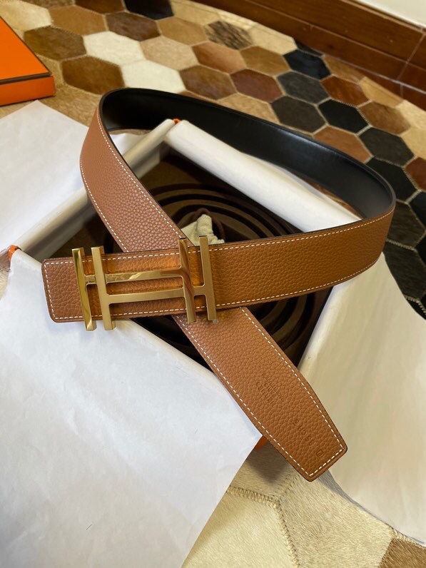 Hermes Togo leather stainless steel duplex buckle 38mm classic men s belt