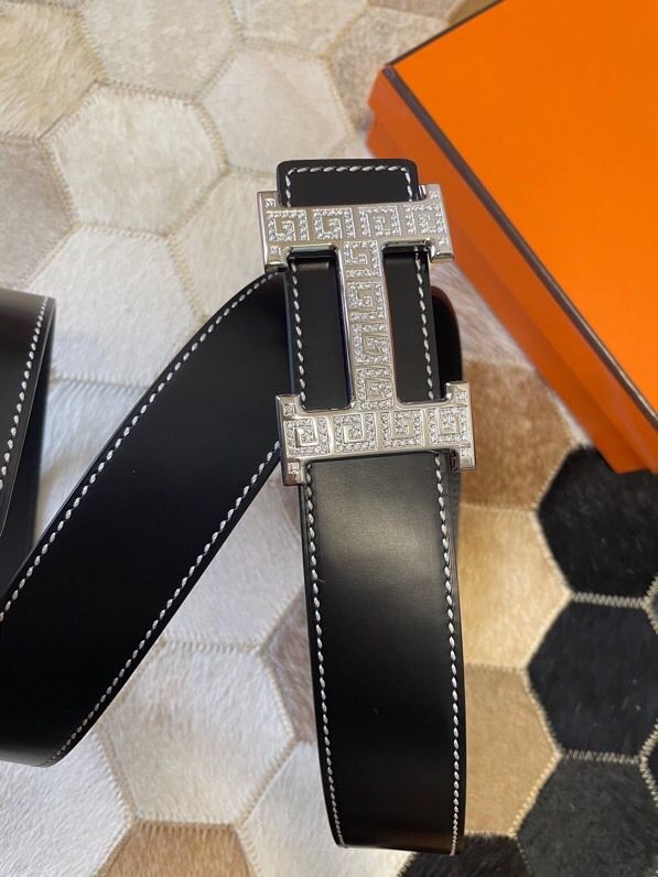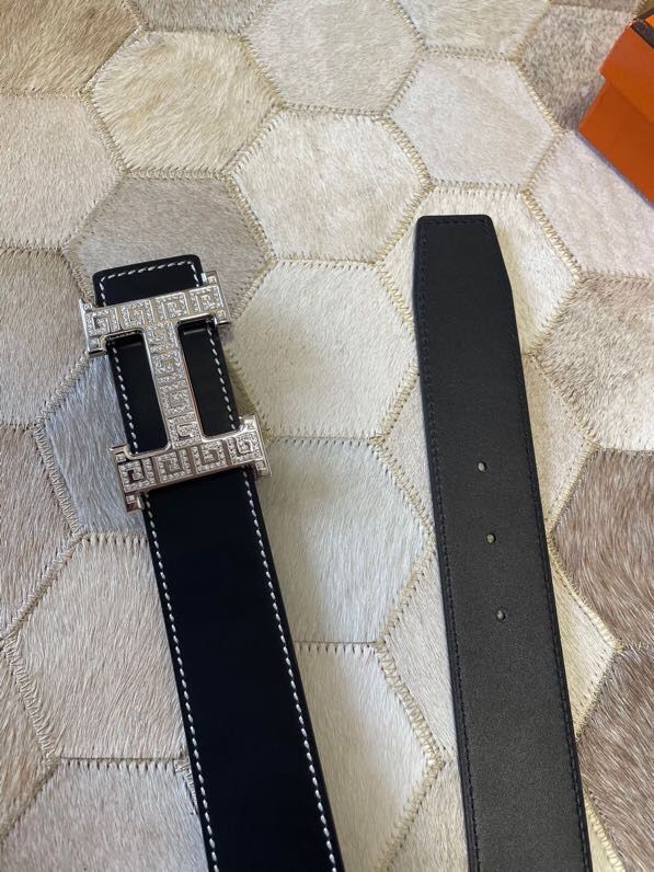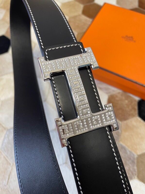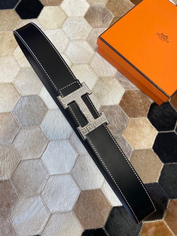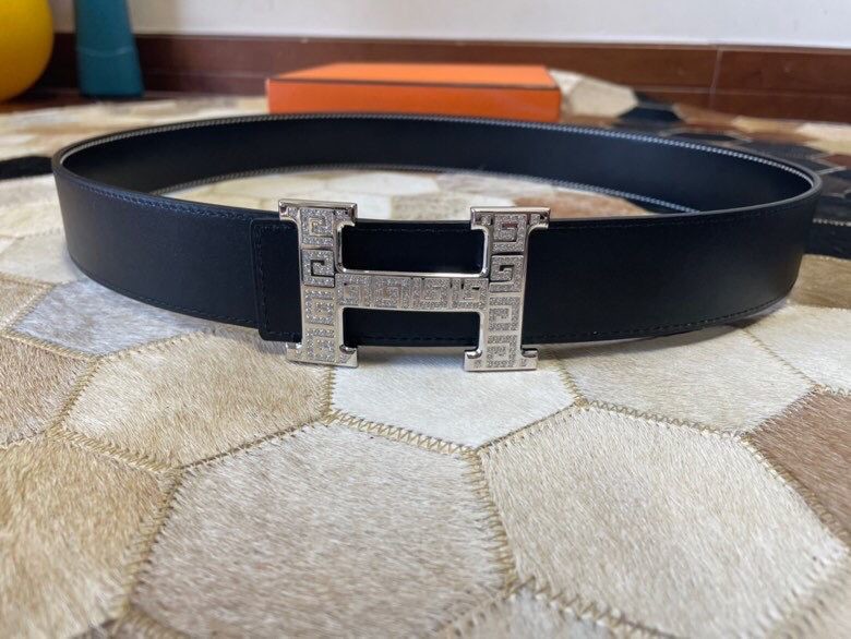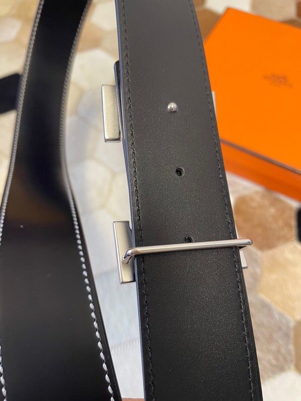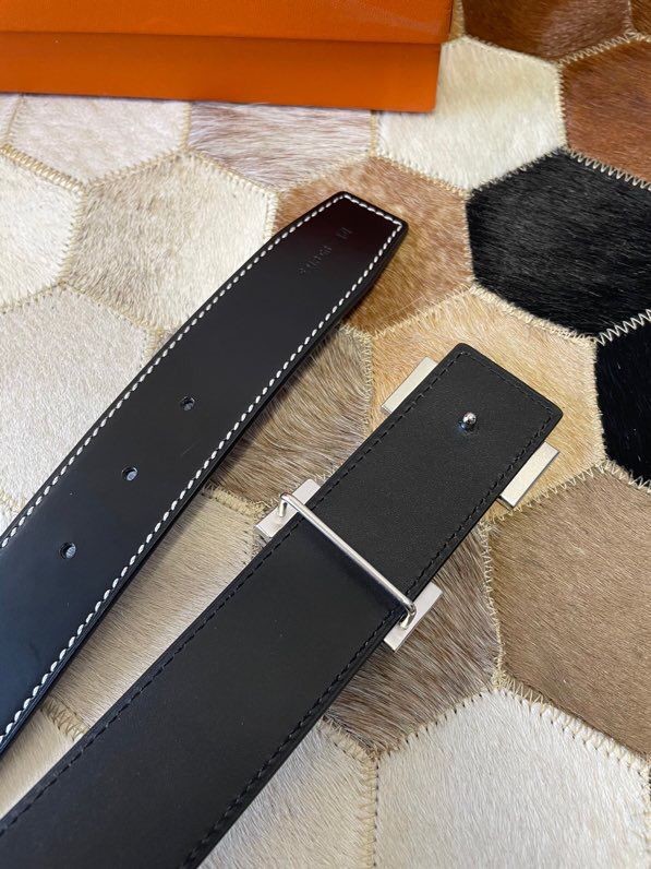 Hermes Stainless steel metal buckle leather men s 3.8cm belt