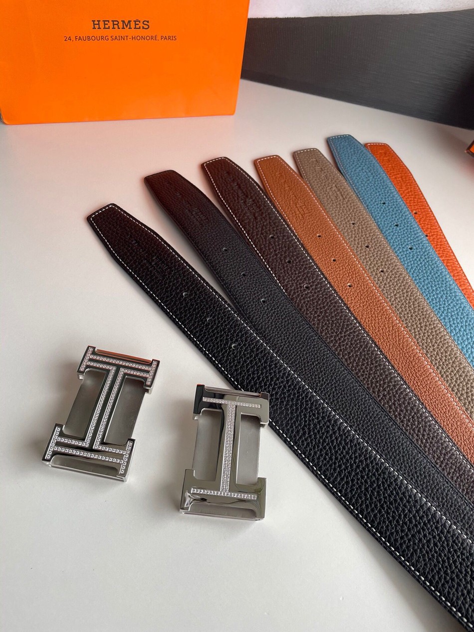 Hermes stainless steel double row inlaid diamond inner buckle men s 3.8cm belt