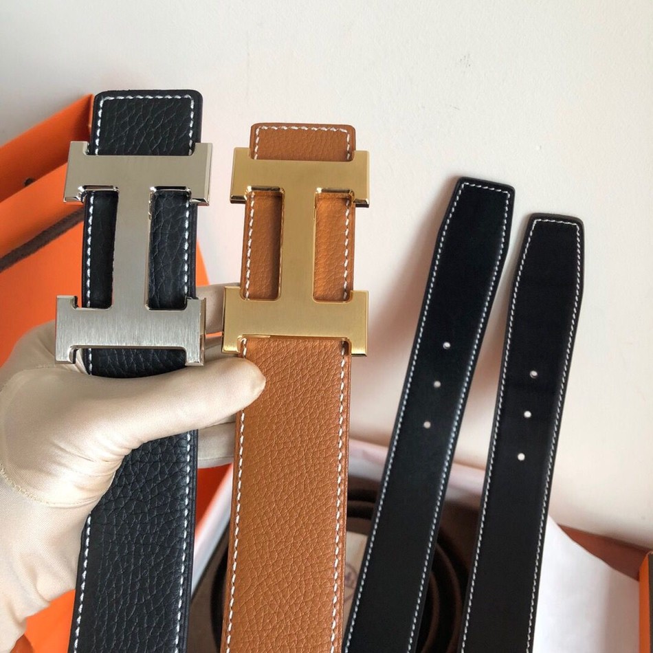 Hermes stainless steel welded metal buckle imported selected high-quality leather 3.8cm men s belt
