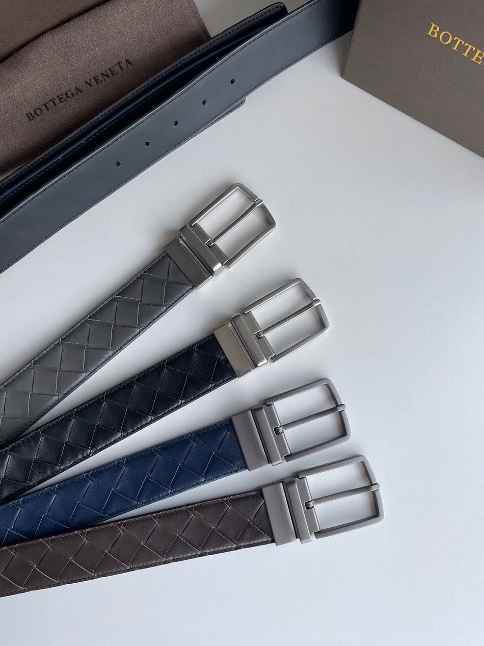 Bottega Veneta woven leather Intrecciato belt with rotating metal buckle 3.8cm