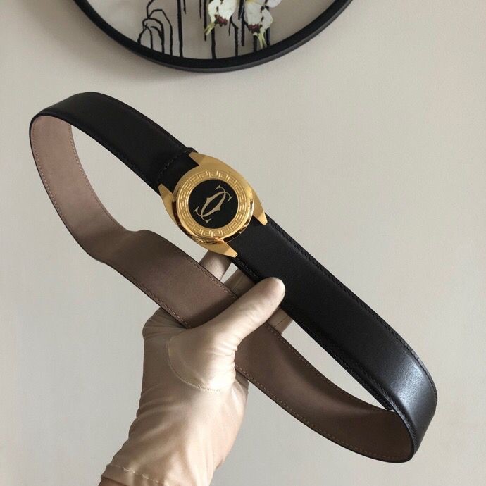Cartier stainless steel inlaid diamond buckle with cowhide 3.5cm belt