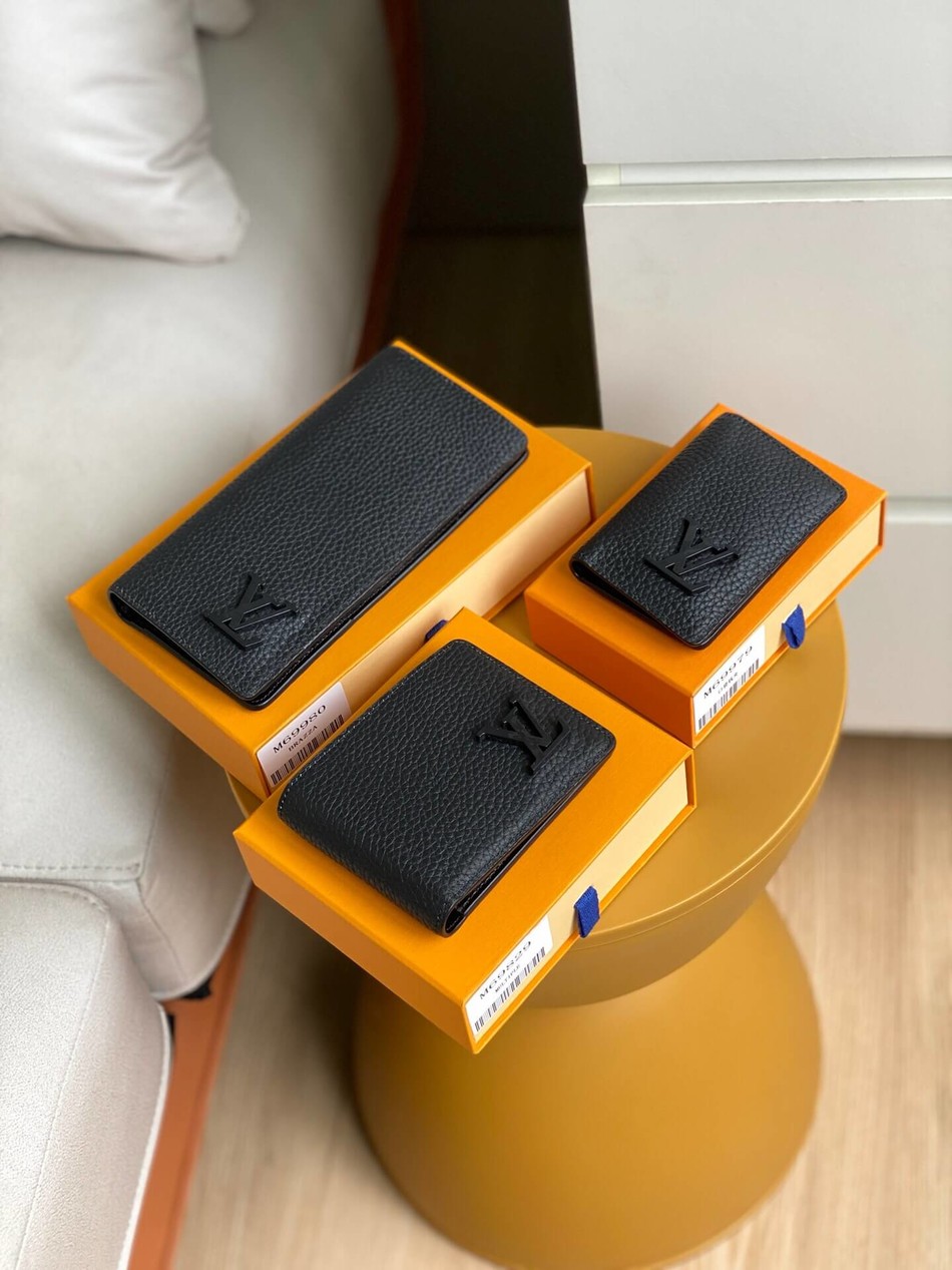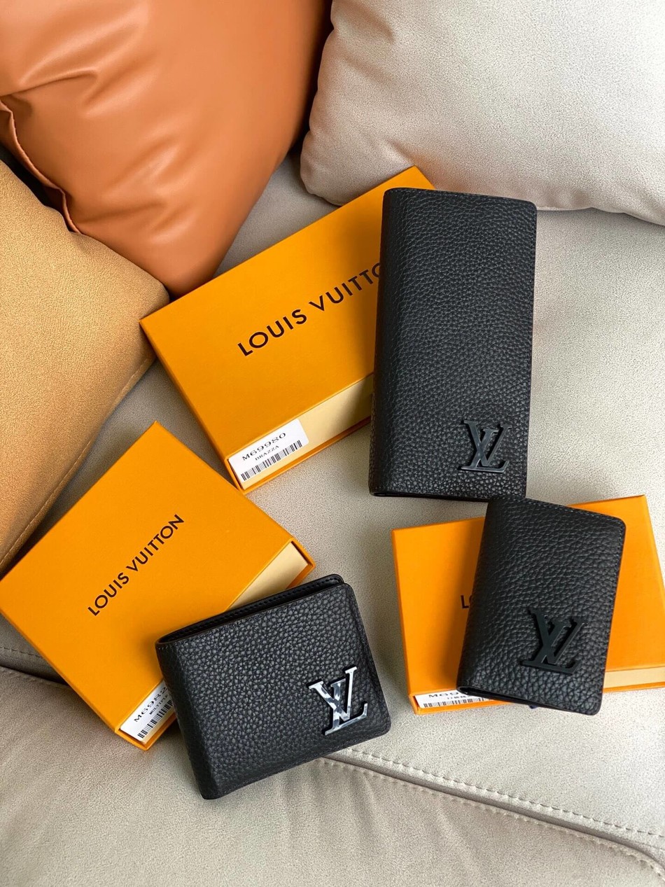 Aerogram Brazza wallet with grained calfskin metal LV letters