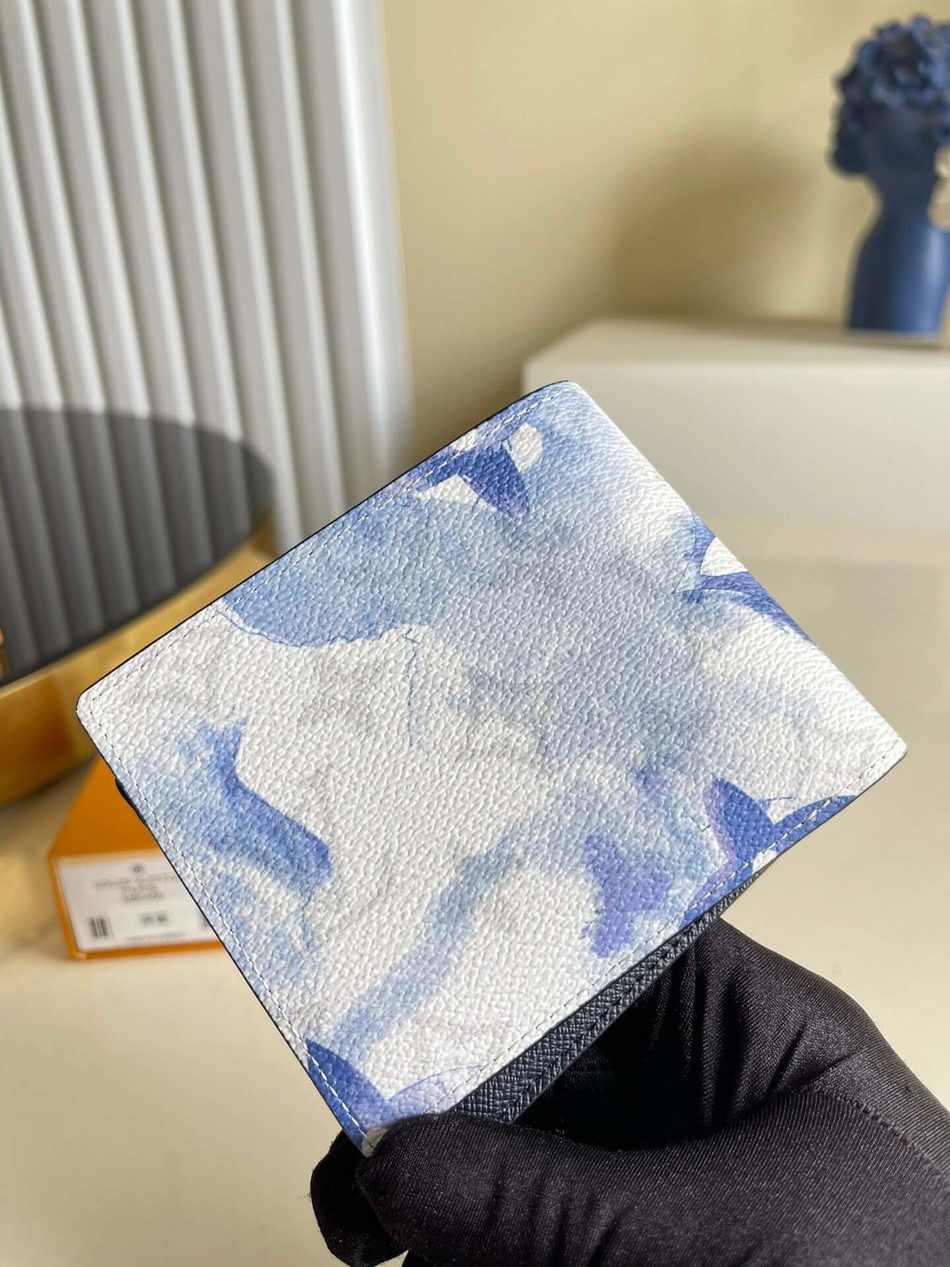 Multiple wallet Monogram Watercolor Blue canvas
