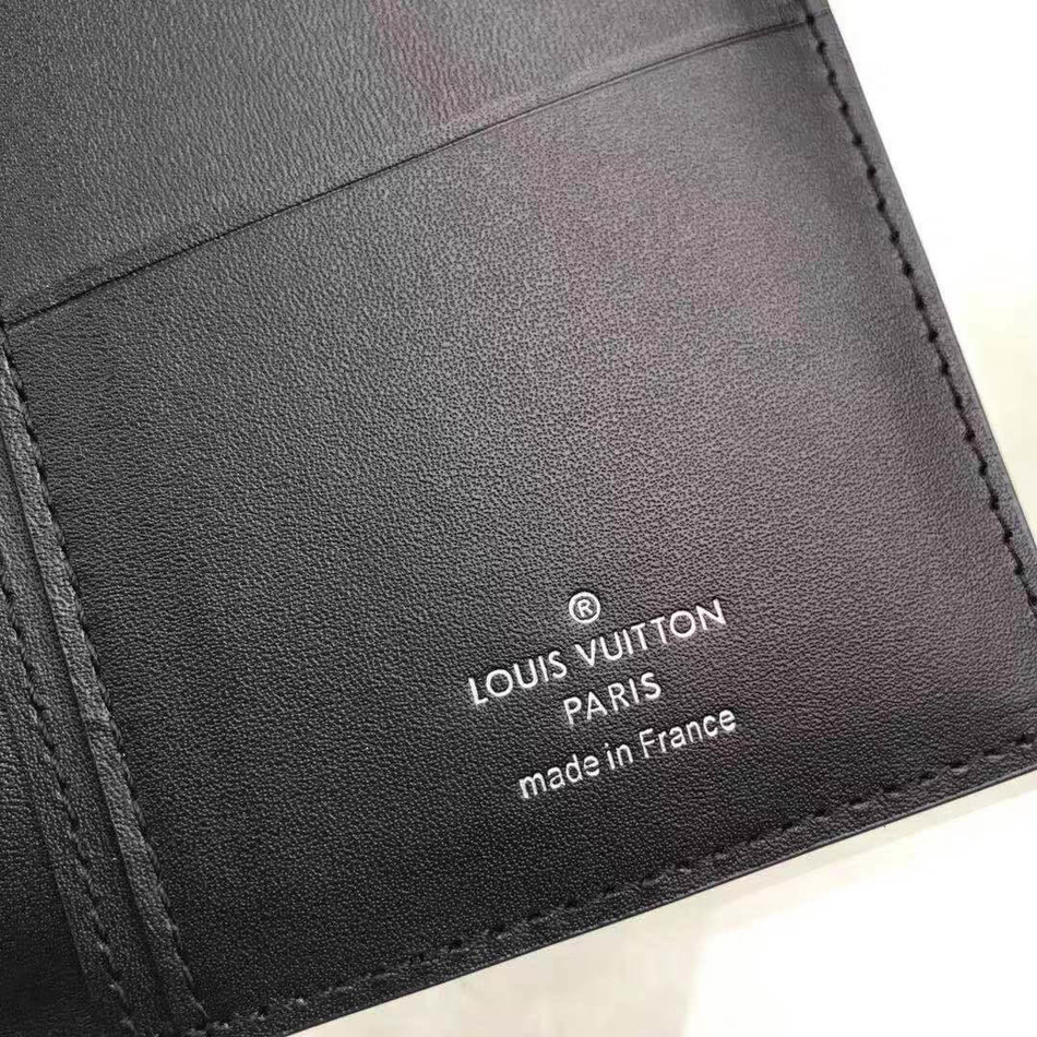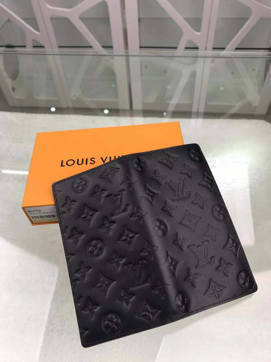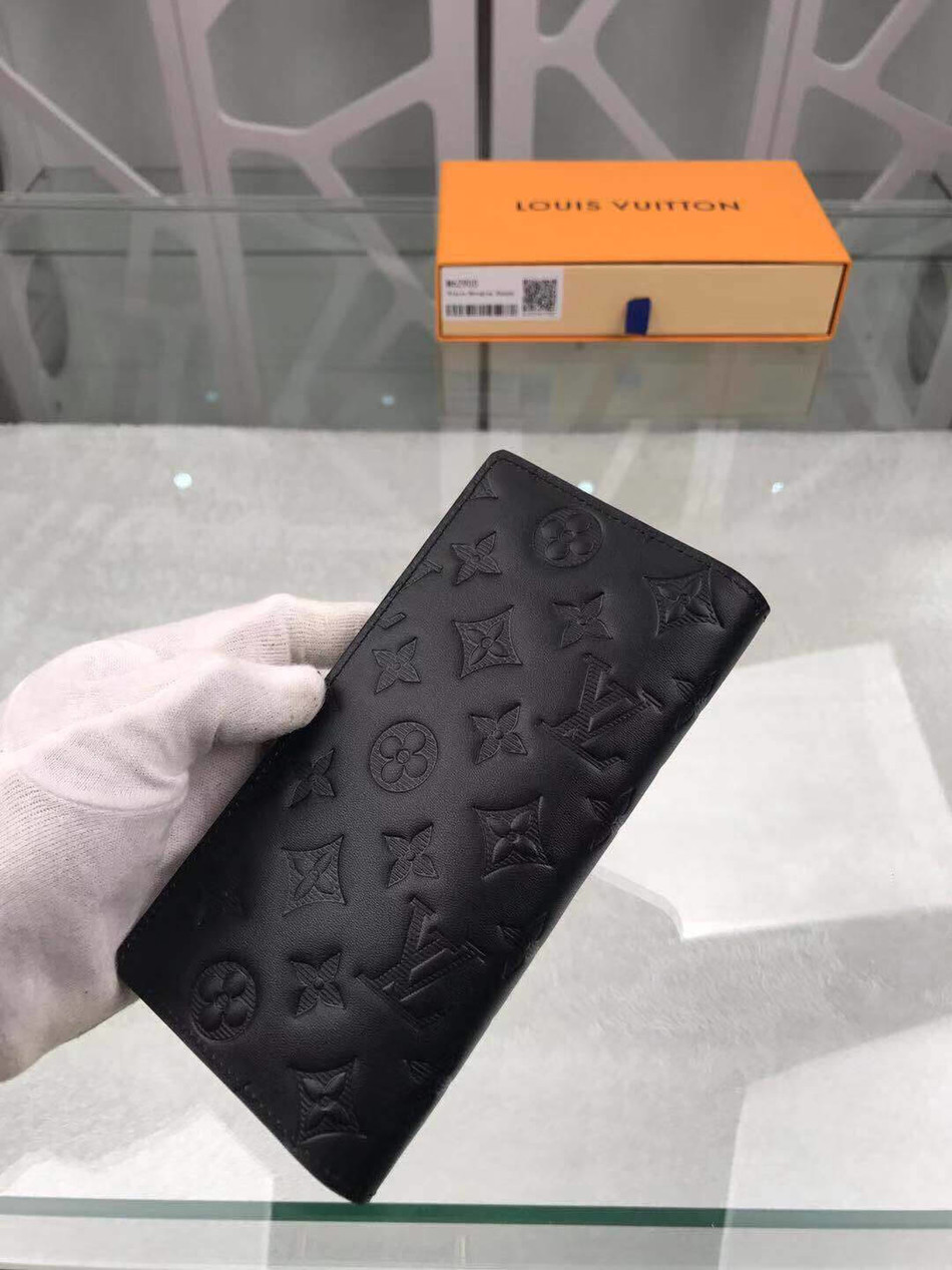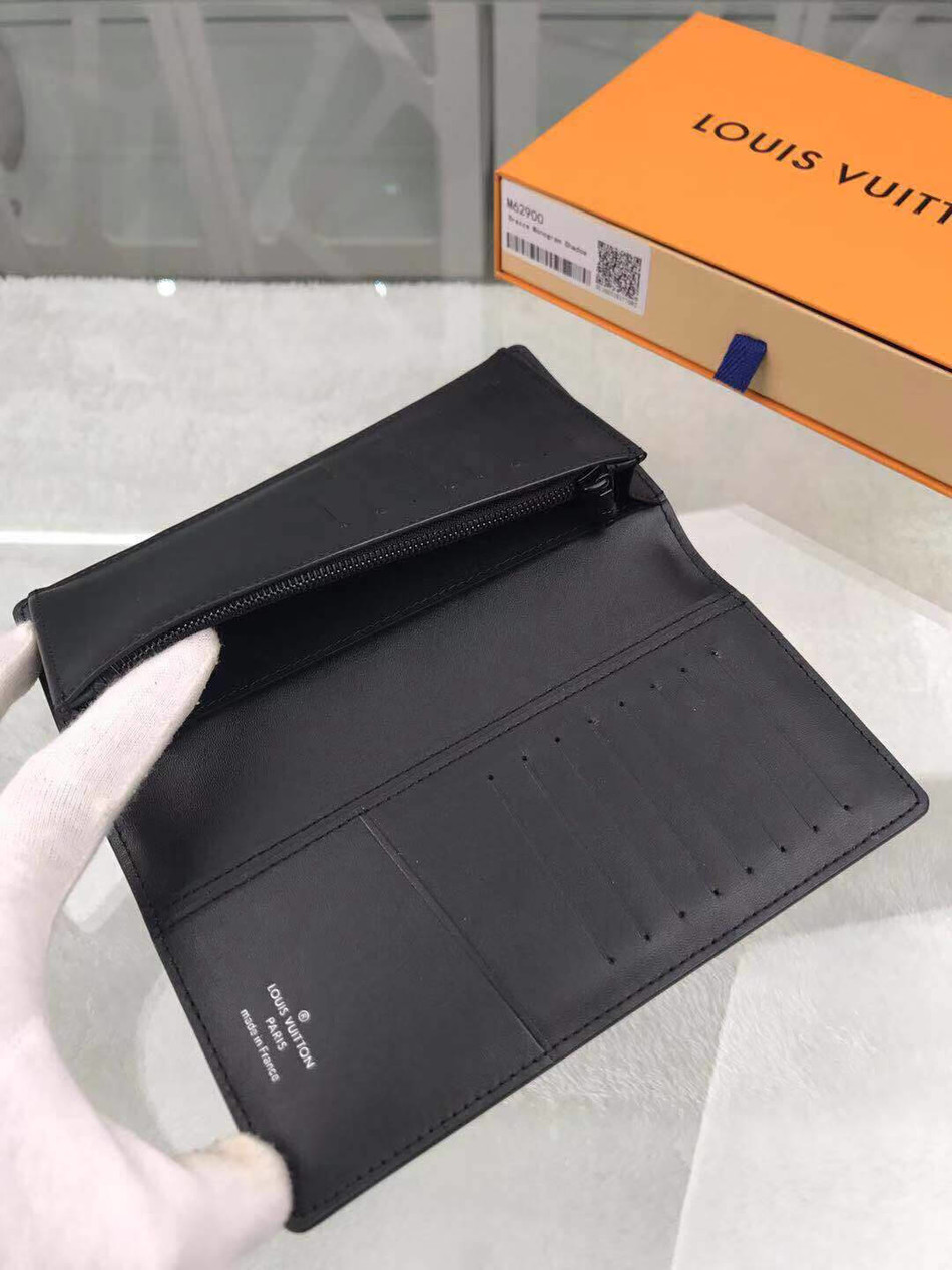 M62900 black calfskin soft Brazza wallet with signature embossing, multiple card slots and compartments. Size: 10.0 x 19.0 x 2.0 cm