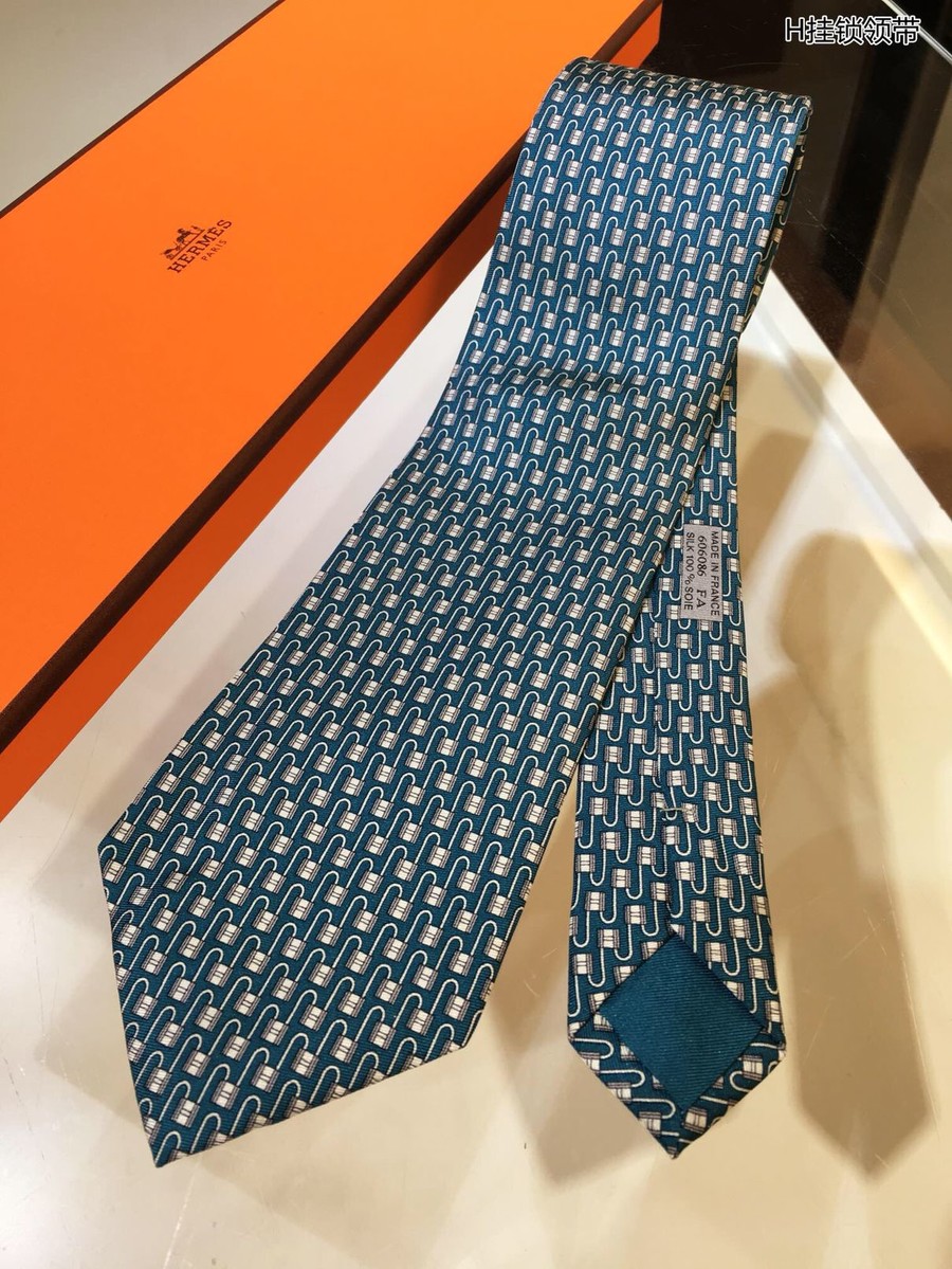 Hermes 100% Top Twill Silk + Wool Lining H Padlock Tie