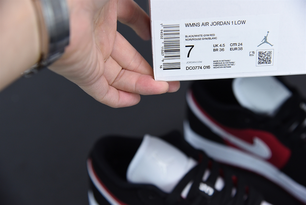 Jordan 1 Low Black White Gym Red (W)