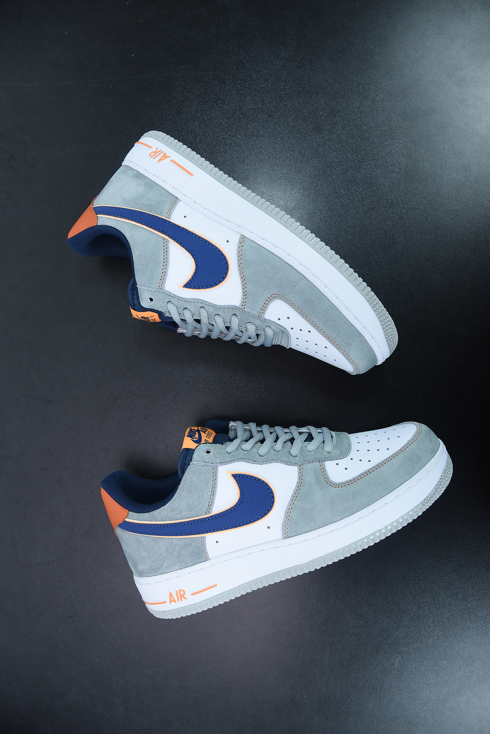 Nike Air Force 1 07 Low White Cool Grey Navy Blue Orange